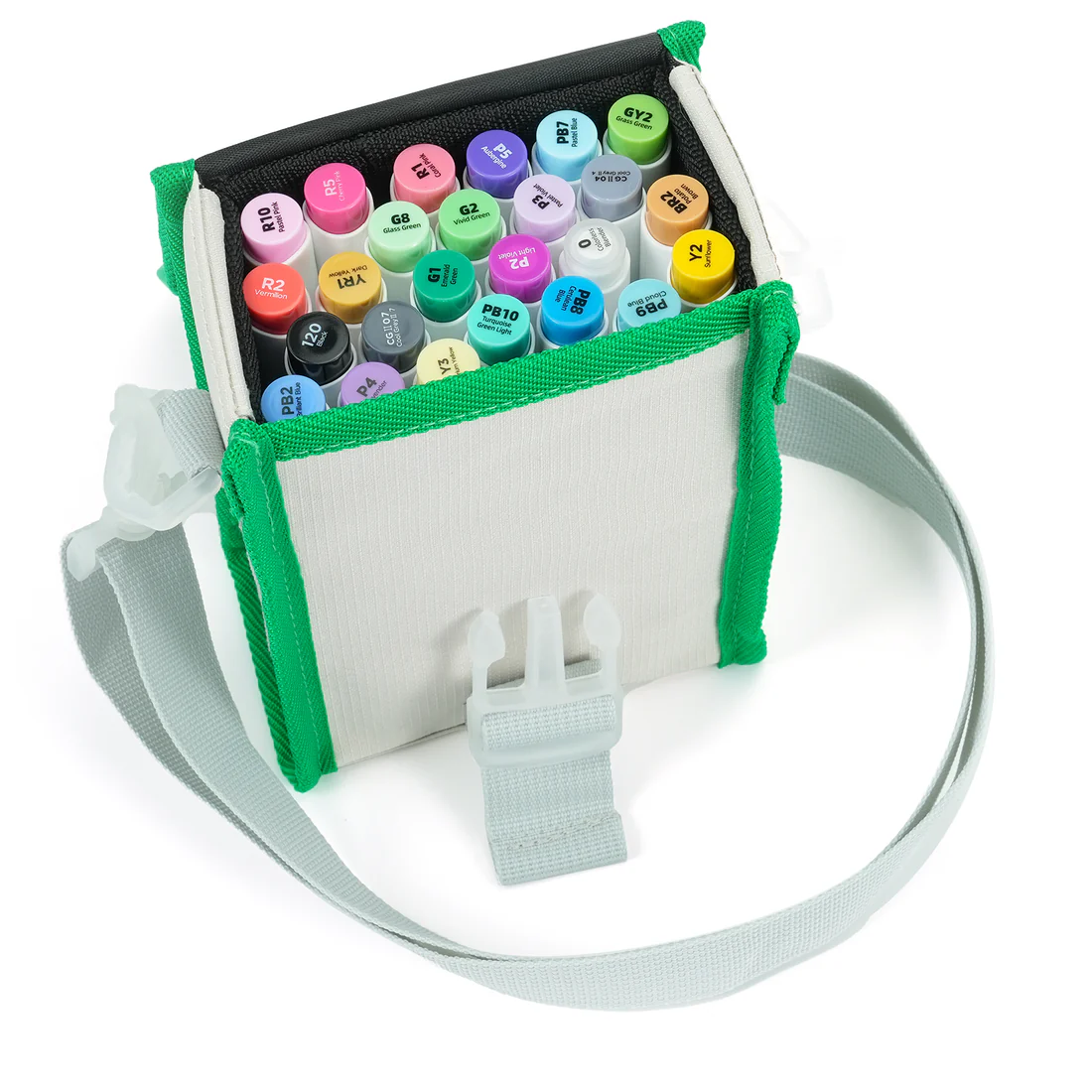 Για μέγιστη ευκολία, οι χρωματικά κωδικοποιημένα καπάκια βοηθούν να βρίσκετε άμεσα την απόχρωση που θέλετε, ενώ η δωρεάν θήκη μεταφοράς διατηρεί τους μαρκαδόρους τακτοποιημένους και έτοιμους για χρήση.