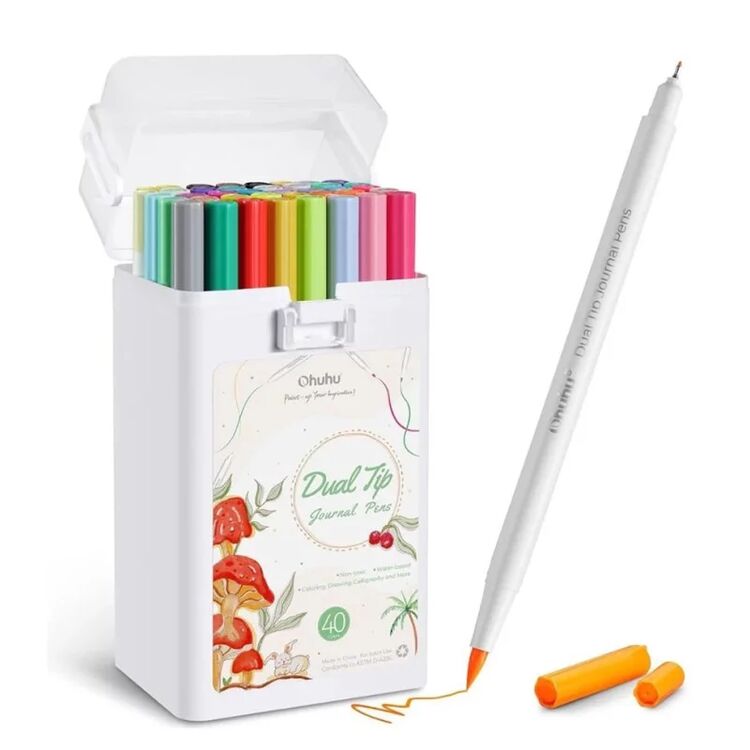 Ειδικά σχεδιασμένο για τους λάτρεις του bullet journaling, το ολοκαίνουριο σετ της Ohuhu διαθέτει διπλές μύτες με πινέλο και fineliner, προσφέροντας ό,τι χρειάζεστε για τις δημιουργίες σας. Με 40 χρώματα σε παστέλ και νέον αποχρώσεις, καλύπτει πλήρως όλες τις ανάγκες σας.