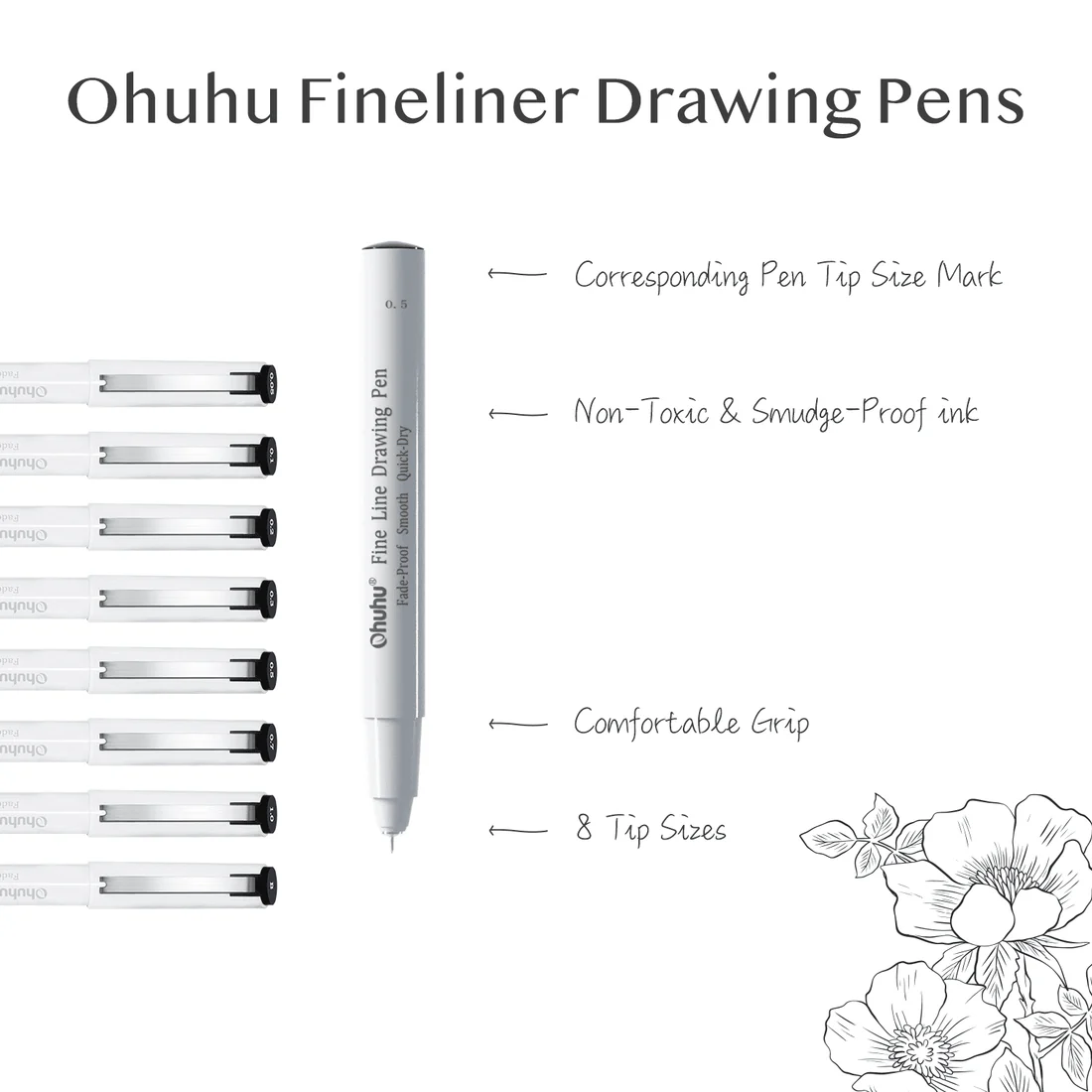 Ohuhu Set of 8 Fineliner Drawing Pens