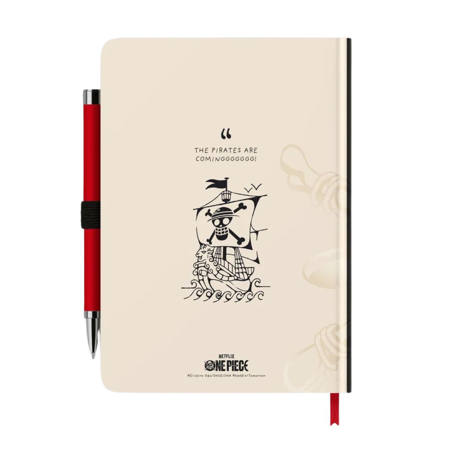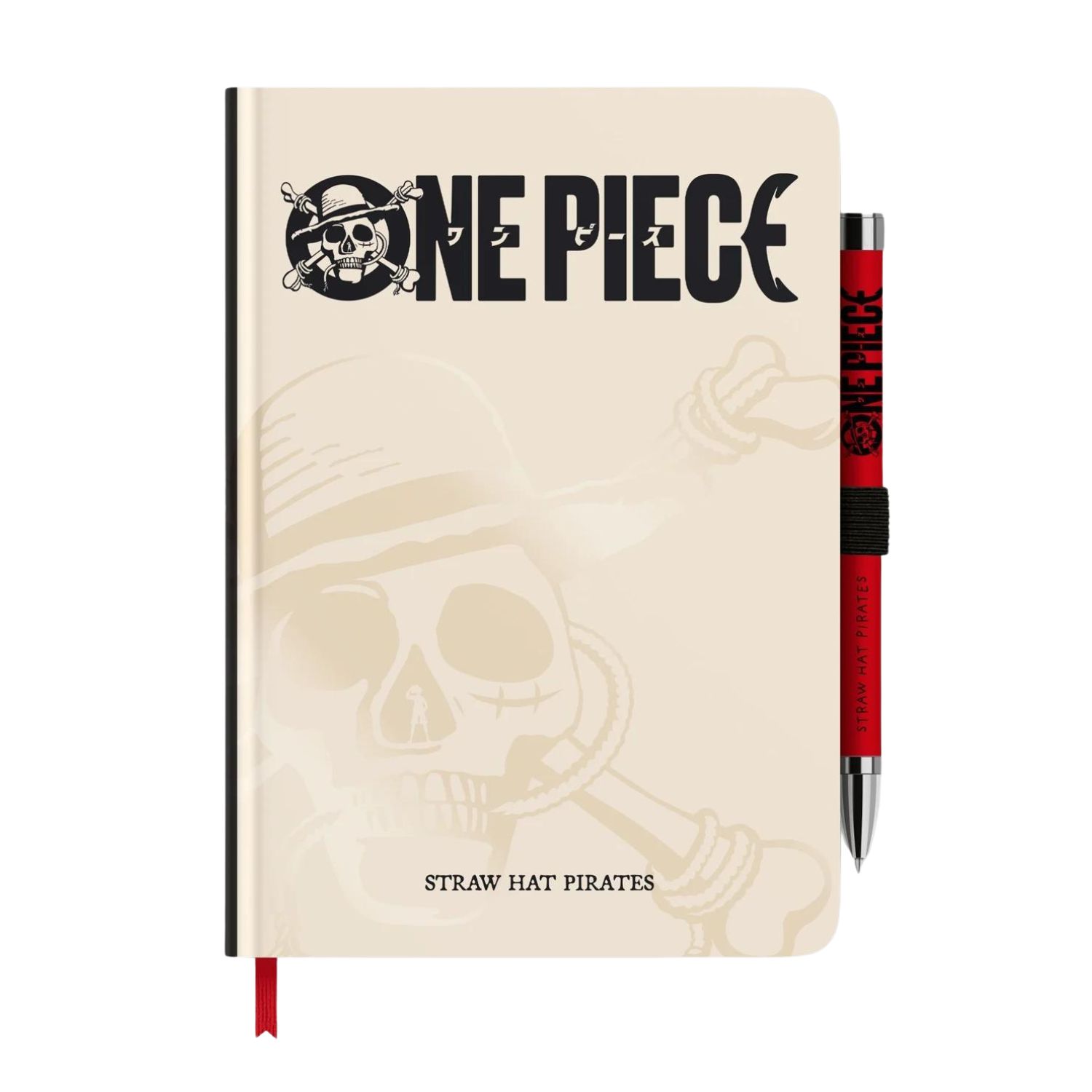 Ανακαλύψτε το σημειωματάριο One Piece Premium και το ειδικό στυλό προβολής που περιλαμβάνει, για να ζωντανέψετε τη μαγεία του κόσμου του One Piece! Το σημειωματάριο διαθέτει σκληρό εξώφυλλο A5 με ματ φινίρισμα, προσαρμοσμένες γραμμές στις σελίδες του, στρογγυλεμένες γωνίες και κόλλα βιβλιοδεσίας. Περιέχει 96 φύλλα (192 σελίδες) από χαρτί 100 g/m² και διαθέτει επιπλέον τσέπη και κορδόνι σελιδοδείκτη για εύκολη οργάνωση.