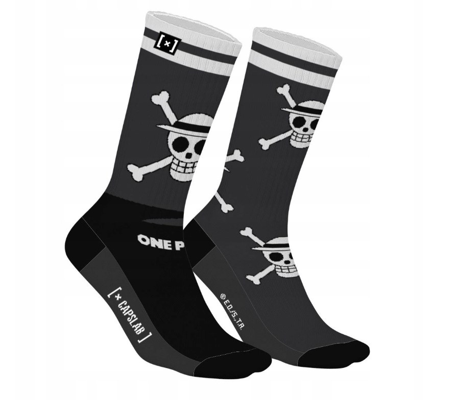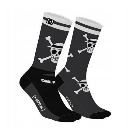 Οι One Piece Socks Skull Grey είναι άνετες βαμβακερές κάλτσες με το λογότυπο των Straw Hat Pirates από τη σειρά One Piece. Διαθέτουν το χαρακτηριστικό Jolly Roger με καπέλο άχυρο, το οποίο αποτελεί το αναγνωρίσιμο σύμβολο του πληρώματος του Monkey D. Luffy.