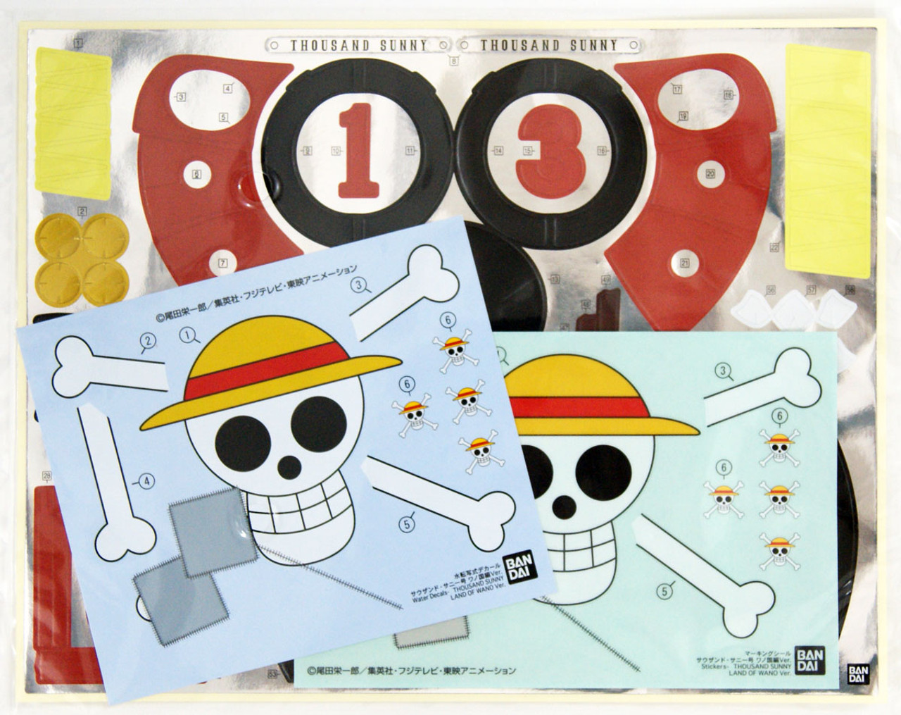 Η Gaon gun και το paddle μπορούν να αντικατασταθούν, ενώ με τη σφραγίδα Kainas και τα water transfer decals αναπαράγεται η ζημιά που υπέστη το Sunny μετά την είσοδό του στη Wano Country. Το σετ περιλαμβάνει Shiromokuba No.1, Mini Merry No.2 και Shark Submerge No.3, μαζί με αποκλειστική βάση προβολής.