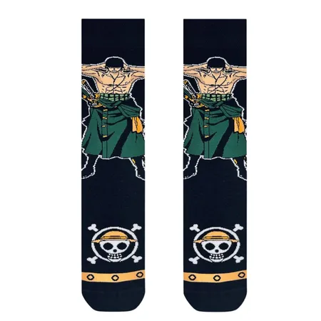 Ζήσε την περιπέτεια του One Piece με στυλ, φορώντας τις κάλτσες Zoro! Εμπνευσμένες από τον θρυλικό ξιφομάχο Roronoa Zoro, αυτές οι κάλτσες διαθέτουν μοντέρνο σχέδιο και εξαιρετική ποιότητα κατασκευής. Το μαύρο χρώμα αναδεικνύει το εντυπωσιακό print και τις λεπτομέρειες, προσφέροντας μια μοναδική εμφάνιση που ξεχωρίζει.