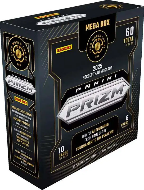 Το Panini 2025 Prizm FIFA Club World Cup Soccer Mega Box προσφέρει μια ενισχυμένη συλλεκτική εμπειρία για όλους τους λάτρεις του ποδοσφαίρου και των trading cards! Αυτό το Mega Box διαθέτει μεγαλύτερη συσκευασία με αποκλειστικές παραλλαγές, inserts και κορυφαίους διεθνείς συλλόγους, προσφέροντας ευκαιρίες για σπάνιες και μοναδικές κάρτες που δεν υπάρχουν σε άλλα formats.
