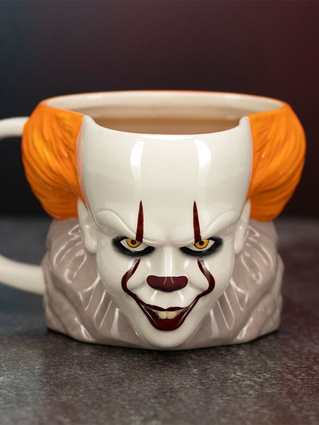 Η Κούπα Pennywise Shaped είναι μια υπερμεγέθη 3D κούπα σε σχήμα του κεφαλιού του Pennywise, του τρομακτικού κλόουν από το διάσημο βιβλίο του Stephen King, "IT". Σχεδιασμένη με εξαιρετική λεπτομέρεια, αυτή η κούπα θα τρομάξει τους φίλους και τους αγαπημένους σας στην επόμενη παύση για τσάι, καθώς μπορείτε να απολαύσετε το ποτό σας απευθείας από την κορυφή του κεφαλιού του κλόουν. Ιδανική για συλλέκτες και λάτρεις της σειράς IT, αλλά και γενικότερα για τους φίλους των ταινιών τρόμου. Αυτή η κούπα είναι το τέλειο δώρο για γενέθλια, Χριστούγεννα ή Halloween και αποτελεί μέρος της σειράς Horror από την Paladone, η οποία περιλαμβάνει διάφορα αξεσουάρ και δώρα εμπνευσμένα από τις πιο διάσημες ταινίες τρόμου.