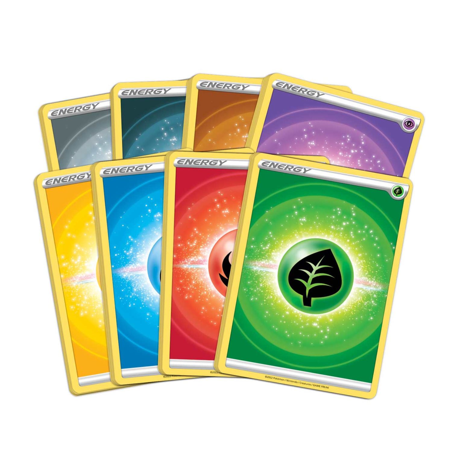 Το Pokemon Astral Radiance Build & Battle Stadium Box περιέχει: – 2 μεμονωμένα Build & Battle Boxes, το καθένα από τα οποία περιέχει μια έτοιμη τράπουλα 40 καρτών, 4 booster, και μια 1 από τις 4 unique foil promo cards – 4 επιπλέον Pokemon TCG: Sword & Shield – Astral Radiance booster packs, ώστε να έχετε 12 συνολικά – 121 Pokemon TCG Energy cards – 6 damage-counter ζάρια – 1 competition-legal coin-flip ζάρι – 2 ακρυλικά condition markers – Ένα συλλεκτικό κουτί που χωράει τα πάντα