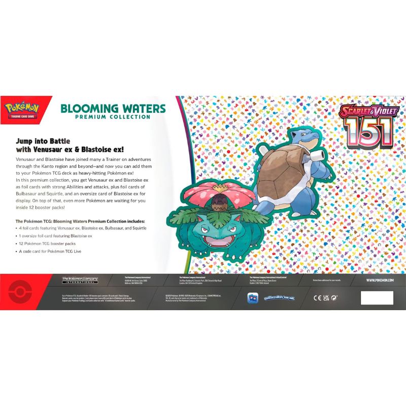 Ετοιμάσου για μάχη με το Venusaur ex και το Blastoise ex! Το Venusaur και το Blastoise έχουν συνοδεύσει πολλούς Trainers στις περιπέτειές τους στην περιοχή Kanto και πέρα από αυτήν, και τώρα μπορείς να τους προσθέσεις στο Pokemon TCG deck σου ως ισχυρά Pokémon ex! Σε αυτή την premium συλλογή, θα βρεις το Venusaur ex και το Blastoise ex ως foil κάρτες με ισχυρές ικανότητες και επιθέσεις, καθώς και foil κάρτες των Bulbasaur και Squirtle και μια υπερμεγέθη foil κάρτα του Blastoise ex για προβολή. Και αν αυτό δεν είναι αρκετό, 12 booster packs σε περιμένουν με ακόμα περισσότερα Pokémon!