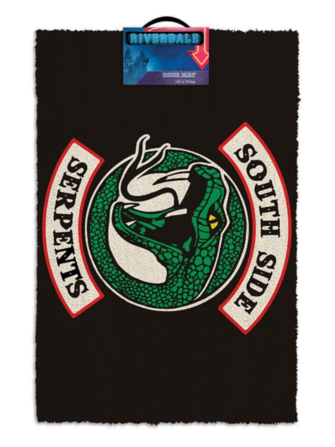 Δείξτε στους καλεσμένους σας την εξαιρετική σας άποψη σε τηλεοπτικές σειρές πριν καν μπουν στο σπίτι σας με αυτό το εντυπωσιακό χαλάκι πόρτας από τη σειρά Riverdale! Διακοσμημένο με το λογότυπο των Serpents από τη δημοφιλή σειρά, το χαλάκι αυτό θα προσθέσει μια αίσθηση στυλ και μυστηρίου στην είσοδό σας. Κατασκευασμένο από ίνες καρύδας και με αντιολισθητική PVC κάτω επιφάνεια, είναι ιδανικό για εξωτερικούς και εσωτερικούς χώρους, προσφέροντας πρακτικότητα και διακόσμηση.