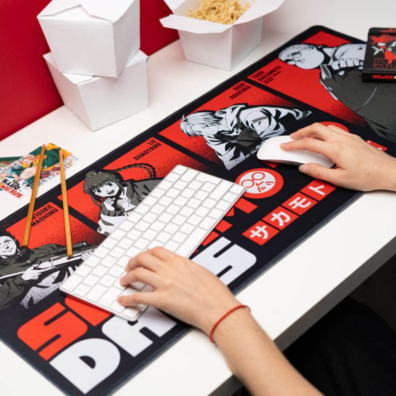Το Sakamoto Days keyboard και mouse pad είναι το ιδανικό αξεσουάρ για να προσθέσετε μια μοναδική και αυθεντική πινελιά στο γραφείο ή το gaming setup σας, εμπνευσμένο από τη σειρά anime Sakamoto Days.