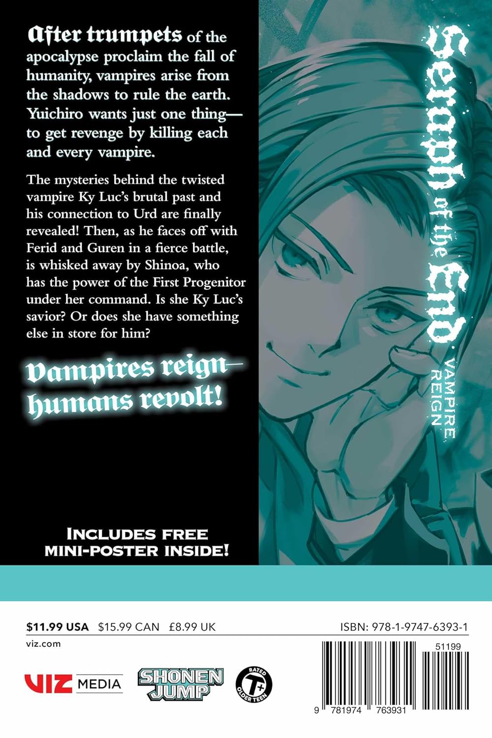 Στο Seraph of the End, Vol. 34: Vampire Reign, σε έναν μετα-αποκαλυπτικό κόσμο όπου οι βρικόλακες μάχονται με τους ανθρώπους, ο Yuichiro ξεκινά μια αποστολή εκδίκησης ενάντια στους κυρίαρχους βρικόλακές του. Μετά τις σάλπιγγες της αποκάλυψης που σηματοδοτούν την πτώση της ανθρωπότητας, οι βρικόλακες αναδύονται από τις σκιές για να κυριαρχήσουν στη γη. Ο Yuichiro θέλει μόνο ένα πράγμα—να εκδικηθεί σκοτώνοντας τον καθένα από αυτούς.