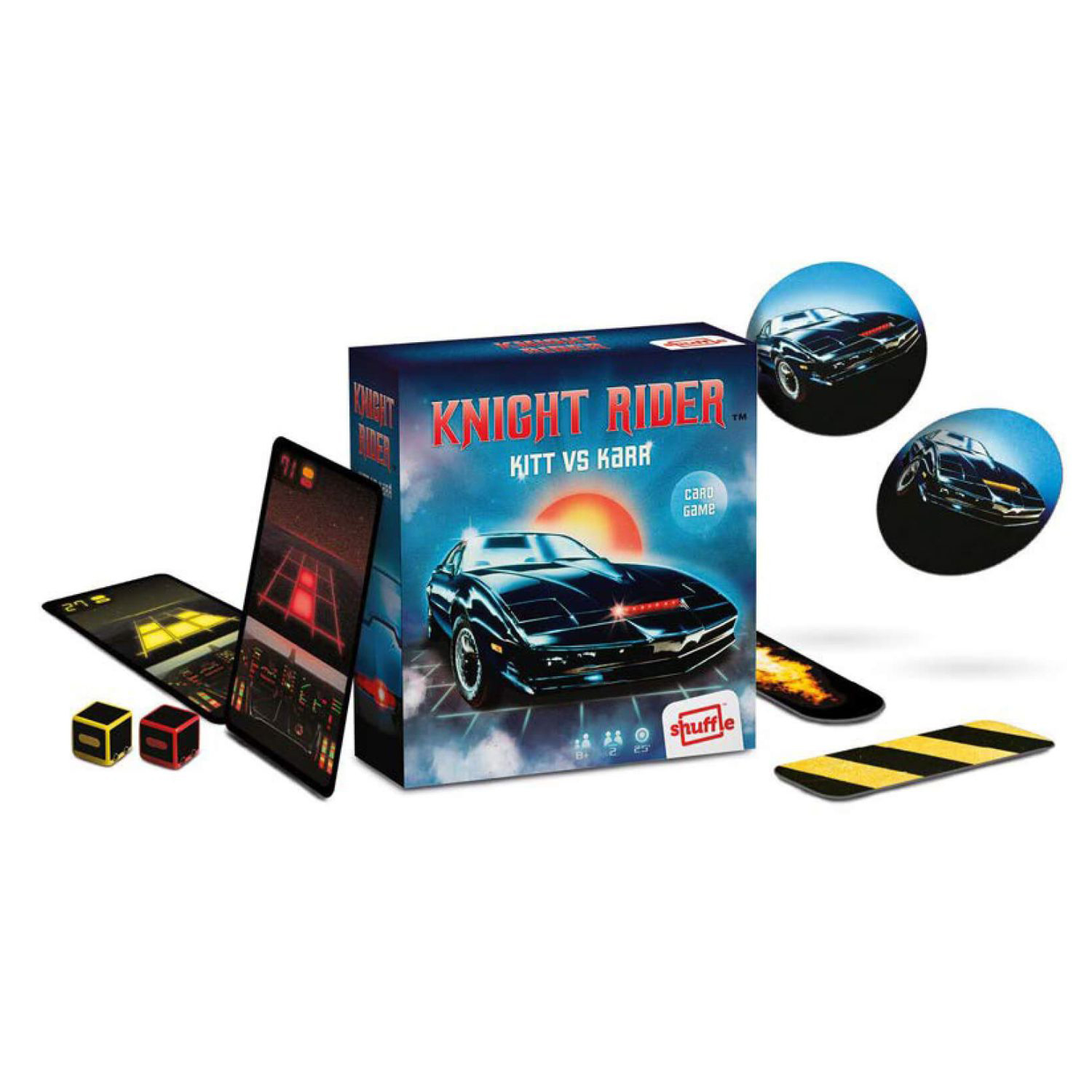 Ζήστε τη δράση του Ιππότη της Ασφάλτου με το παιχνίδι καρτών Shuffle Games! Οι αιώνιοι εχθροί KITT και KARR συγκρούονται σε μια «σώμα με σώμα» μάχη για τη νίκη, με τους παίκτες να εξαντλούν την ενέργεια του αντιπάλου τους οδηγώντας στον χάρτη και εκτελώντας κόλπα επίθεσης ή άμυνας. Ποιος θα στεφθεί νικητής και ποιος θα καταλήξει για παλιοσίδερα; Στον επικίνδυνο και σκοτεινό κόσμο του Knight Rider, όλα είναι πιθανά, προσφέροντας στρατηγική και διασκέδαση για δύο παίκτες.