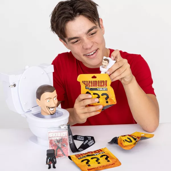 Ζήστε την τρέλα του Skibidi Toilet, της διάσημης animated σειράς του YouTube, με αυτήν την μεγάλη συλλεκτική τουαλέτα Mystery Toilet. Η σειρά παρουσιάζει τις περιπέτειες μιας συμμαχίας ανθρωποειδών με κεφάλια από τηλεοράσεις, κάμερες και ηχεία, που μάχονται εναντίον των Skibidi Toilets, ζωντανών και πανούργων τουαλετών με δικές τους φιλοδοξίες. Αυτή η συλλεκτική τουαλέτα διαθέτει ελατήριο για pop-up κεφάλι, ήχους καζανάκι και περιλαμβάνει μυστικά mini figures για συναρπαστικό ξεπακετάρισμα. Είναι η απόλυτη προσθήκη για κάθε φαν της σειράς και συλλέκτη.
