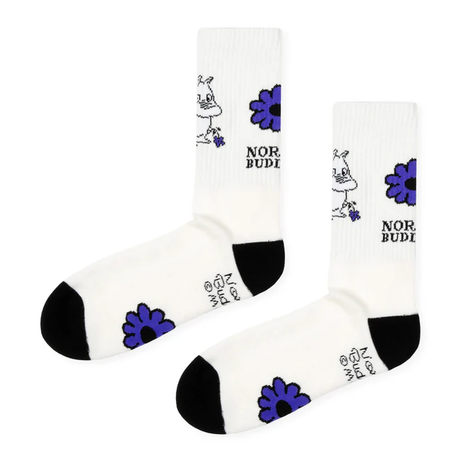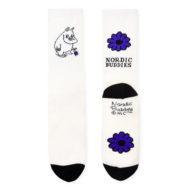 Αναβάθμισε τη συλλογή σου με τις κάλτσες Moomintroll's Flower Retro! Κατασκευασμένες από 67% Βαμβάκι, 25% Πολυεστέρα, 4% Ελαστοδιένιο, 3% Νάιλον και 1% Ελαστάνη, είναι ιδανικές για καθημερινή χρήση και προσφέρουν άνεση και στυλ. Έχουν μέγεθος One size fits all (EU 40-45), αλλά σύμφωνα με την εμπειρία μας, ταιριάζουν άνετα και σε μεγαλύτερα πόδια.