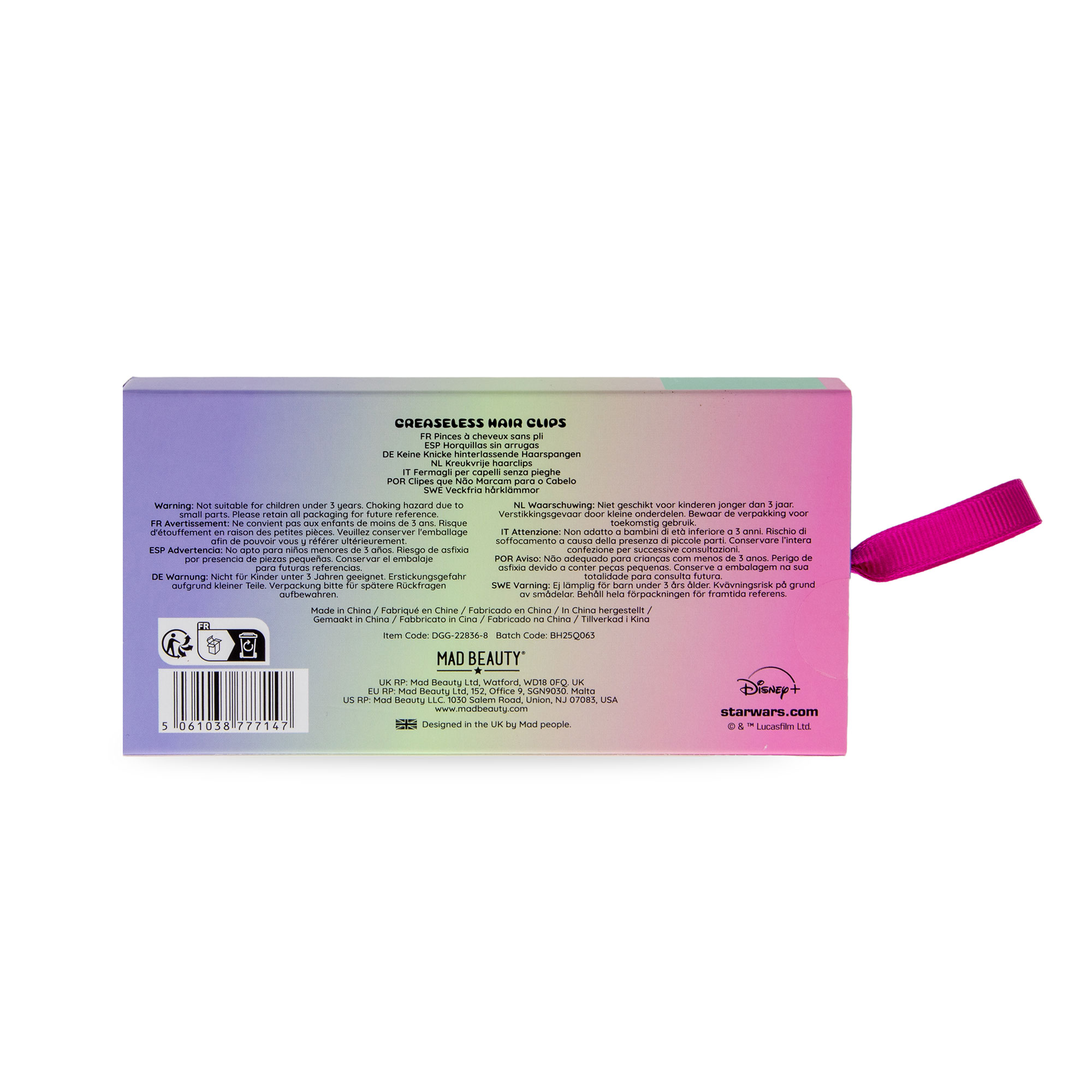 Τα Τσιμπιδάκια Μαλλιών Star Wars Mandalorian Creaseless Clips είναι ένα σετ από 6 πρακτικά και stylish clips εμπνευσμένα από τον Grogu, ιδανικά για να κρατούν τα μαλλιά στη θέση τους χωρίς να αφήνουν σημάδια κατά το styling. Σχεδιασμένα για να είναι απαλά σε όλους τους τύπους μαλλιών, βοηθούν στη δημιουργία χτενισμάτων με άνεση και ακρίβεια, χωρίς σπασίματα ή “γραμμές” στα μαλλιά.