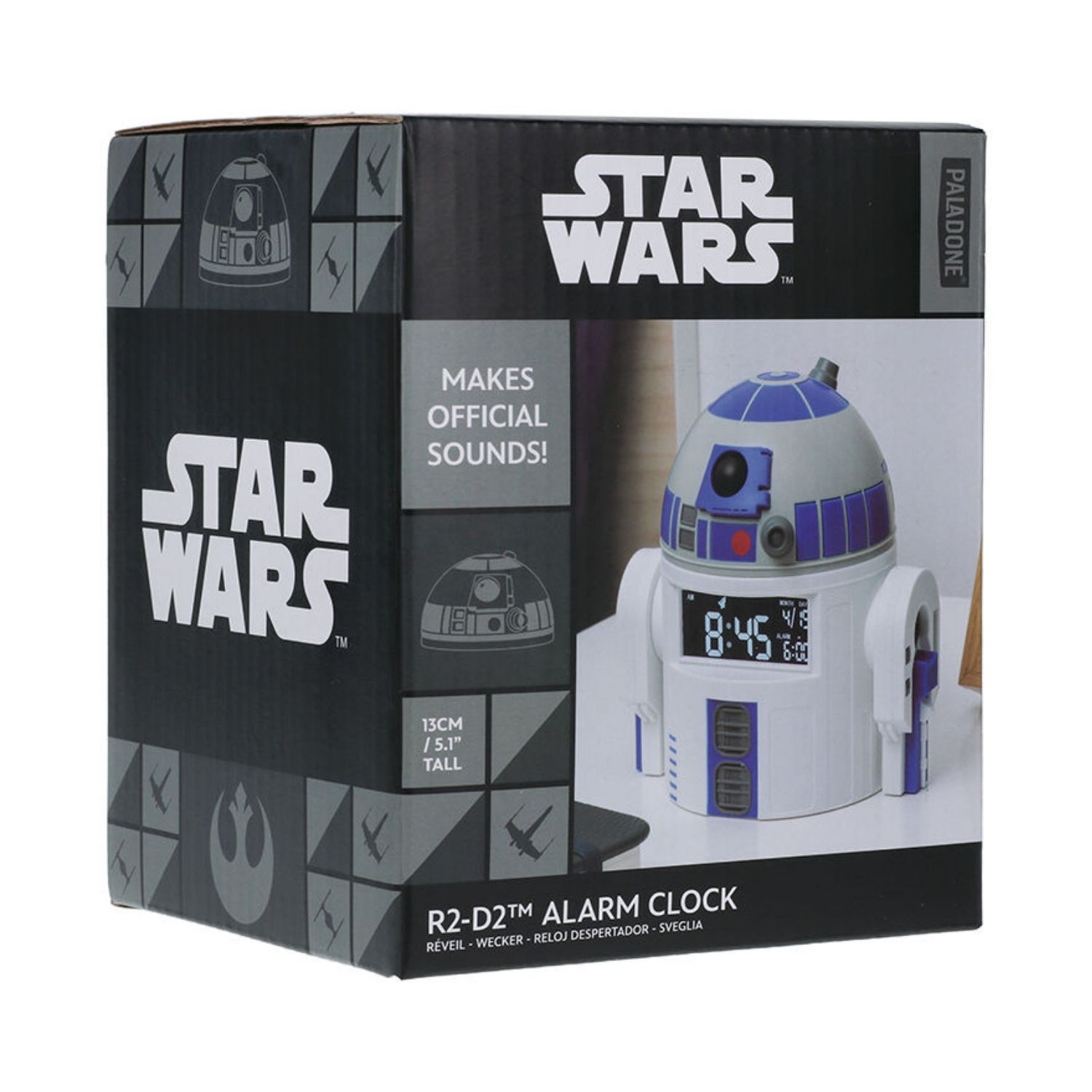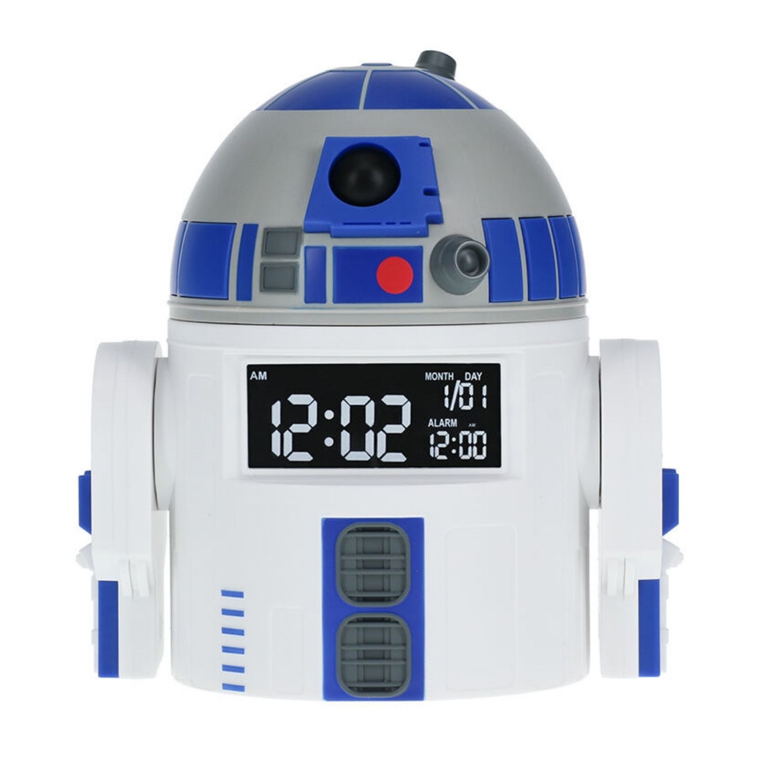 Το ξυπνητήρι σε σχήμα droid ύψους 13cm (5") διαθέτει ψηφιακή οθόνη που εμφανίζει την ώρα και την ημερομηνία, ενώ παίζει επίσημους ήχους του R2-D2 για να σας ξυπνήσει με χαμόγελο.