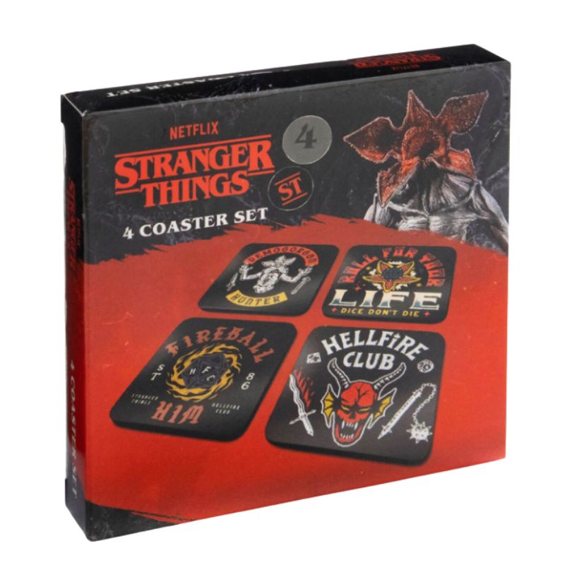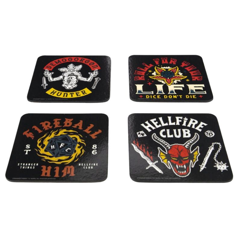 Φέρτε την ατμόσφαιρα του Stranger Things και της εμβληματικής λέσχης Hellfire Club στο τραπέζι σας με αυτό το εντυπωσιακό σετ από 4 σουβέρ. Ιδανικά για προστασία των επιφανειών σας με στυλ, αυτά τα σουβέρ αποτελούν την τέλεια προσθήκη για κάθε φαν της σειράς.