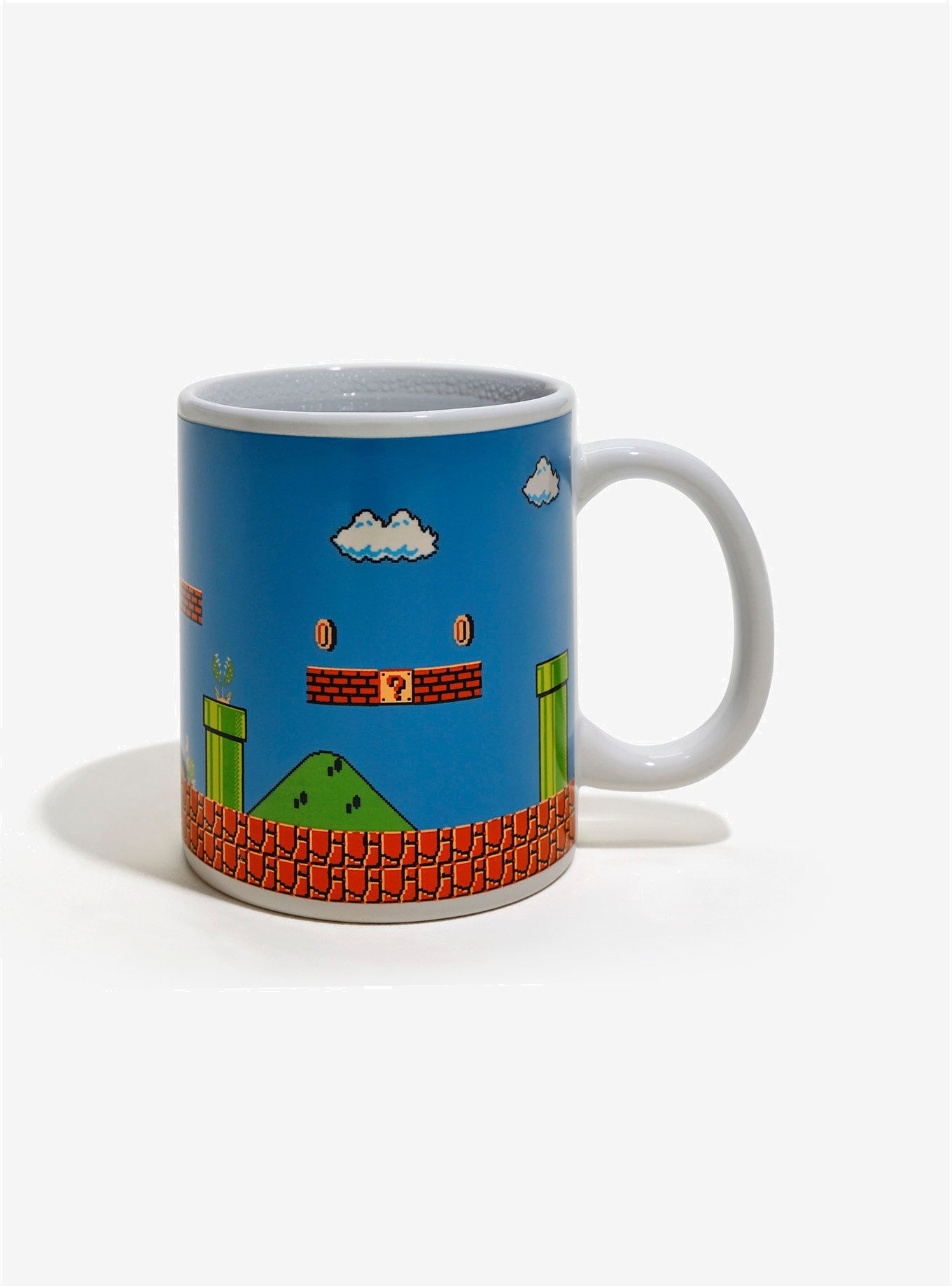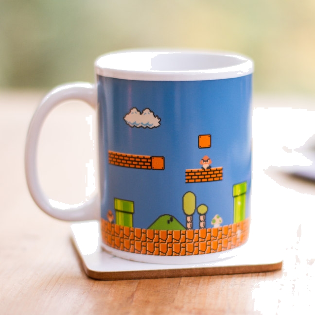 Απόλαυσε ένα power-up με μια θρυλική μορφή των βιντεοπαιχνιδιών μέσα από την Θερμοαντιδραστική Κούπα Super Mario Bros.! Πρόκειται για μια διασκεδαστική κούπα που αλλάζει εικόνα ανάλογα με τη θερμοκρασία του ροφήματός σου. Όταν είναι κρύα, η κούπα εμφανίζει ένα απλό φόντο επιπέδου Mario, αλλά μόλις προσθέσεις ζεστό ρόφημα, το φόντο αλλάζει χρώμα και εμφανίζονται λεπτομέρειες όπως νομίσματα, εχθροί, σύννεφα και φυσικά ο ίδιος ο Mario.