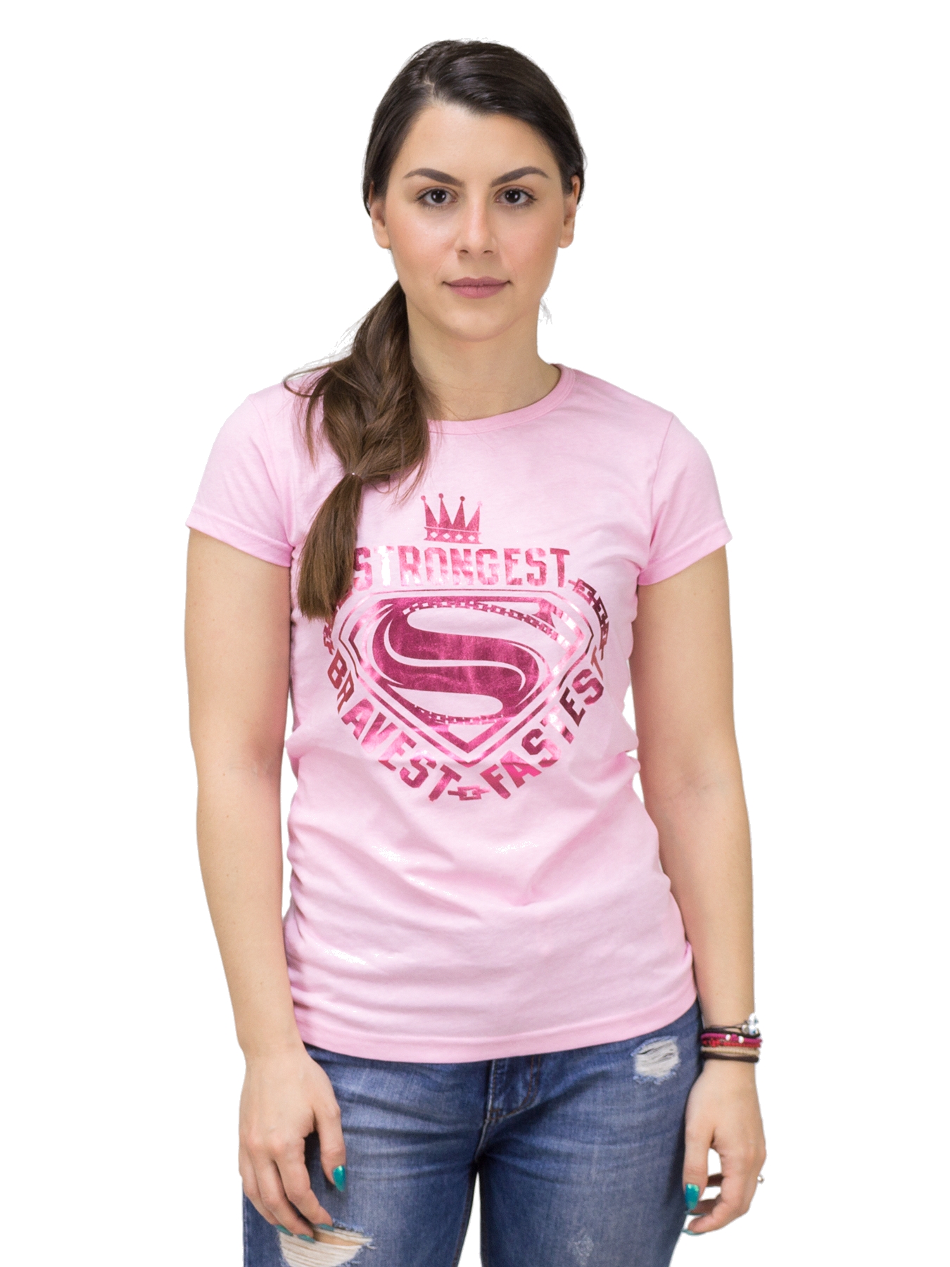 Είναι πουλί. Είναι αεροπλάνο. Όχι ,είσαι εσύ φορώντας το γυναικείο Τ-Shirt Superman. Αυτό το T-Shirt είναι κοντομάνικο και έχει το λογότυπο Superman σε ροζ απόχρωση. - Επίσημο προϊόν DC - 100% βαμβάκι - Imported