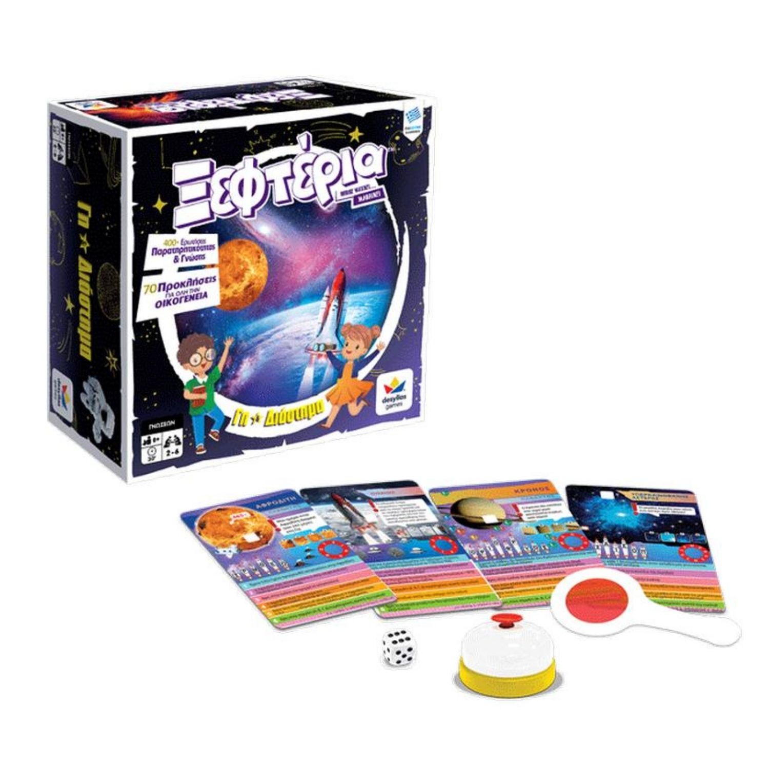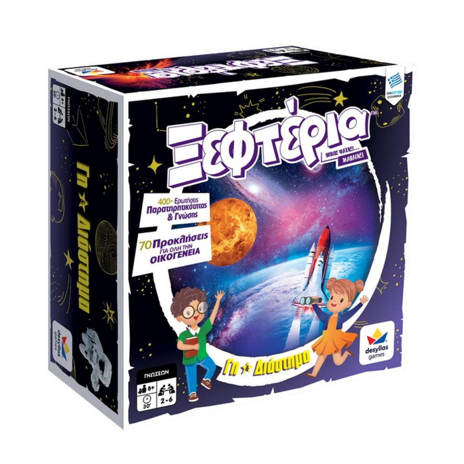 Μάθε και ανακάλυψε για τα αγαπημένα σου θέματα με το Τα Ξεφτέρια: Γη και Διάστημα! Σε αυτό το παιχνίδι, όλοι οι παίκτες παίζουν ταυτόχρονα. Ρίξε το ζάρι, διάβασε δυνατά την ερώτηση και ψάξε την κάρτα για να δώσεις τη σωστή απάντηση πριν τους άλλους παίκτες.