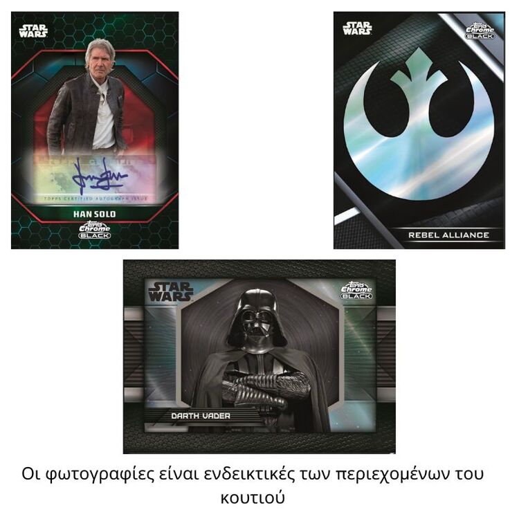 Το Topps Star Wars Chrome Black επιστρέφει για την σεζόν 2024/25 με εντυπωσιακά updates που θα ενθουσιάσουν κάθε συλλέκτη! Για πρώτη φορά, κάθε Hobby Box περιλαμβάνει ένα encased (σε magnetic) αυτόγραφο και ένα encased (σε magnetic) insert για χαρακτήρες από Darkside και Lightside. Επιπλέον, θα βρείτε ένα numbered refractor σε κάθε κουτί, ενώ το base set και τα μοναδικά inserts προσφέρουν νέες δυνατότητες για συλλογές!