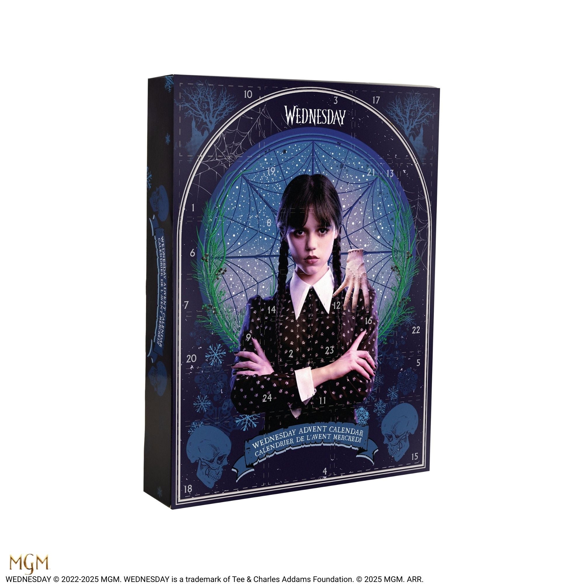 Περιεχόμενα: Το ημερολόγιο περιλαμβάνει 24 αποκλειστικά δώρα με θέμα τη Wednesday, όλα μέσα σε ένα μοναδικό, φέρετρο-σχήματος κουτί.