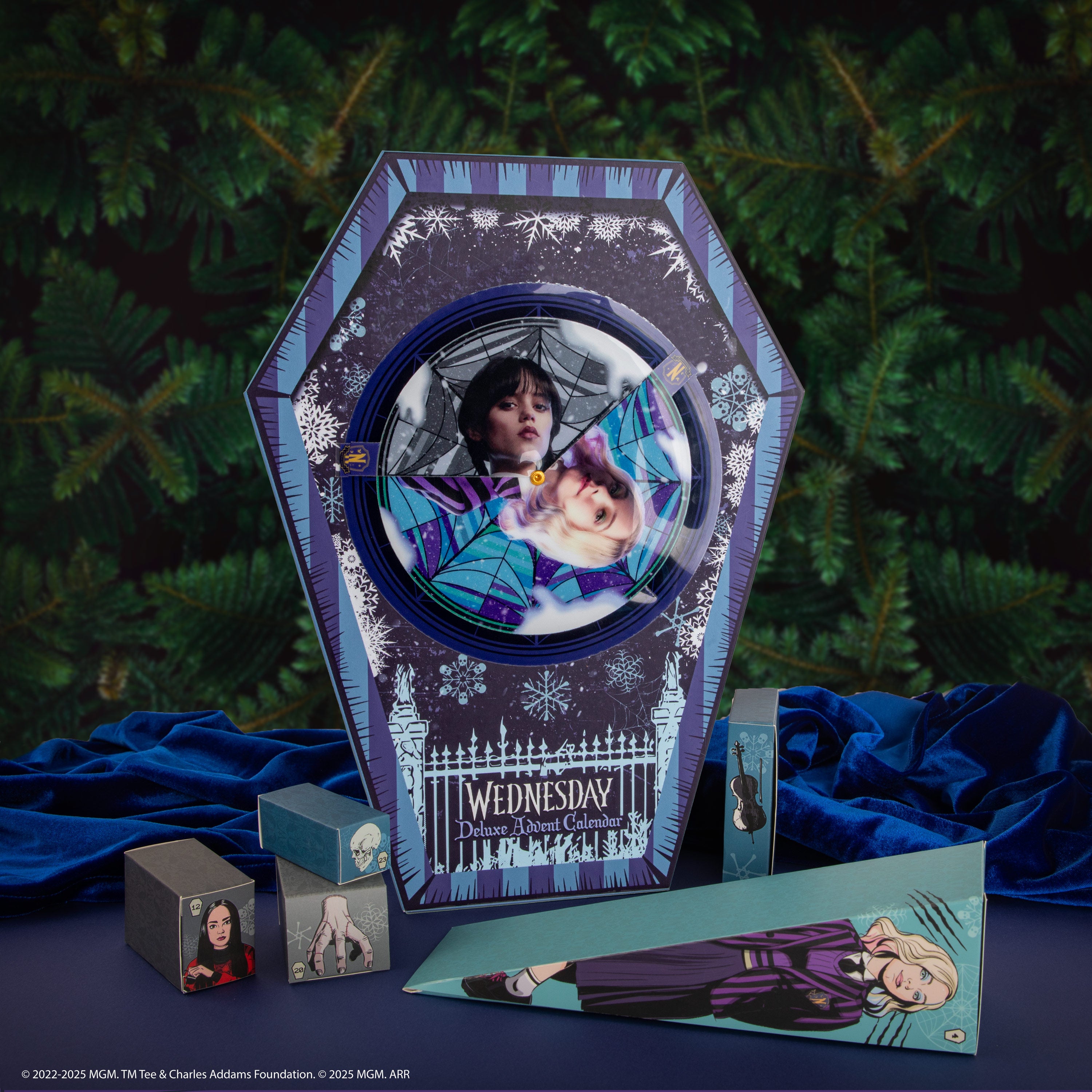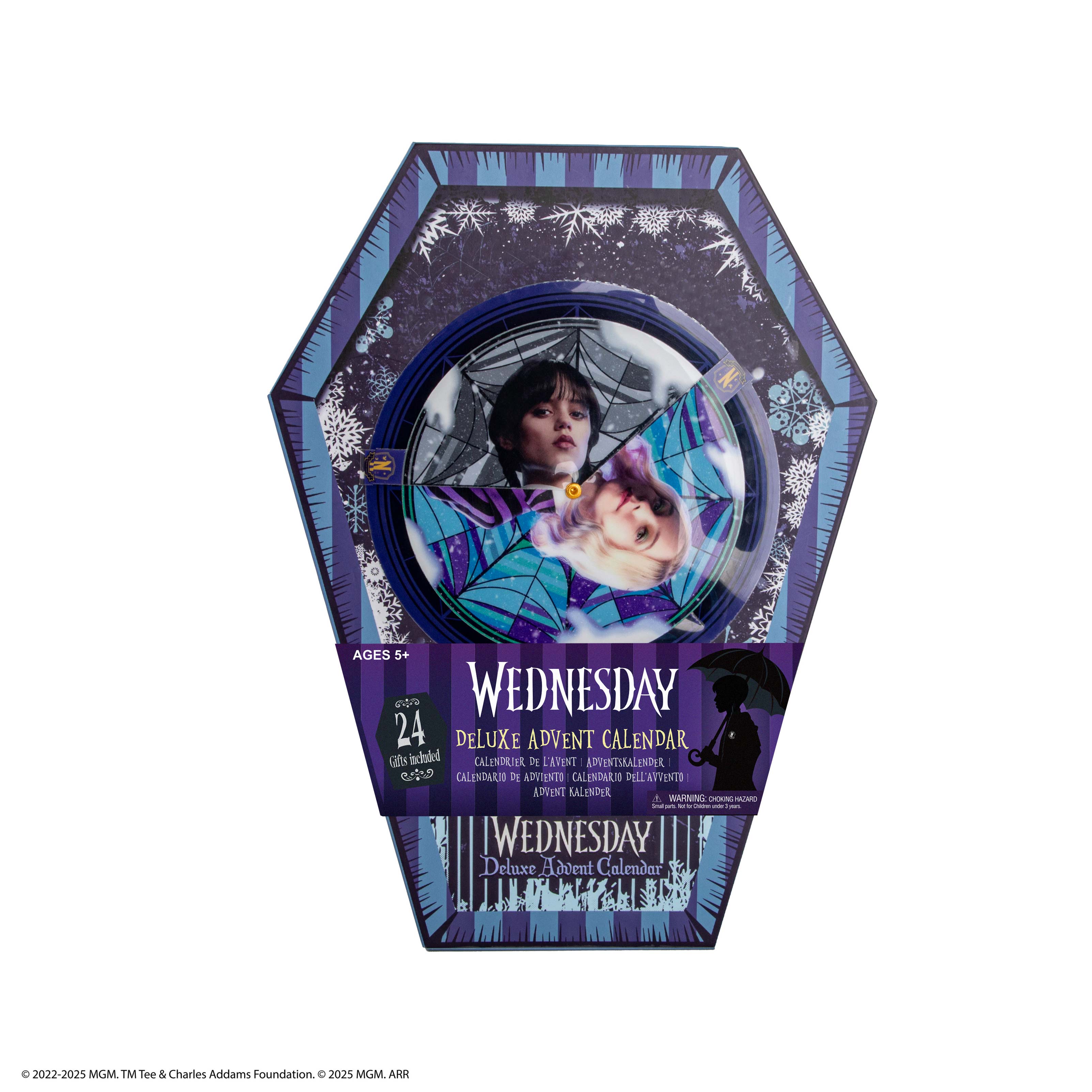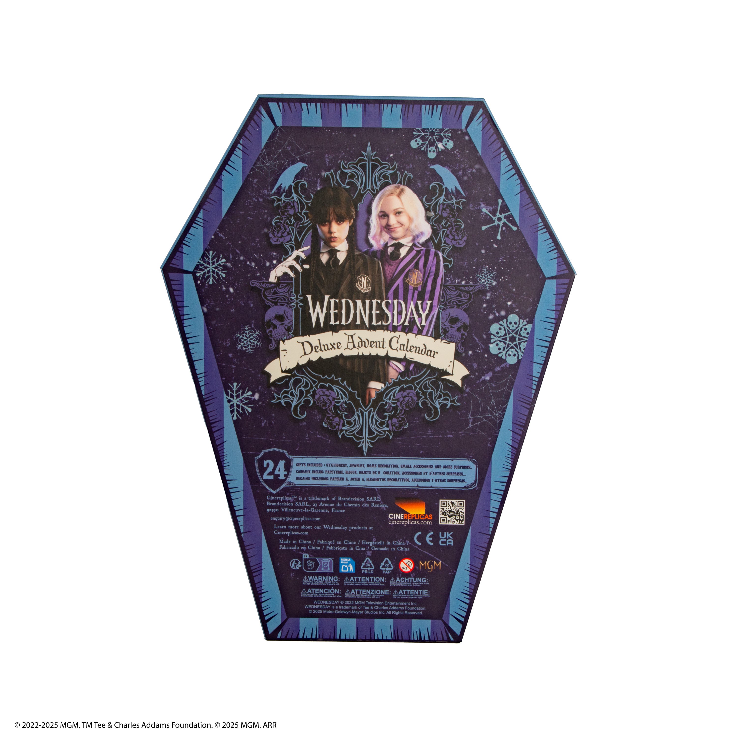 Ανακάλυψε όλα τα δώρα του Wednesday Deluxe Advent Calendar μέσα στο μοναδικά σχεδιασμένο κουτί σε σχήμα φέρετρου! Το ημερολόγιο περιέχει 24 premium δώρα εμπνευσμένα από το σκοτεινό στυλ της Wednesday Addams, φέρνοντας μια μοναδική αίσθηση μυστικισμού και γοητείας στη γιορτινή περίοδο.