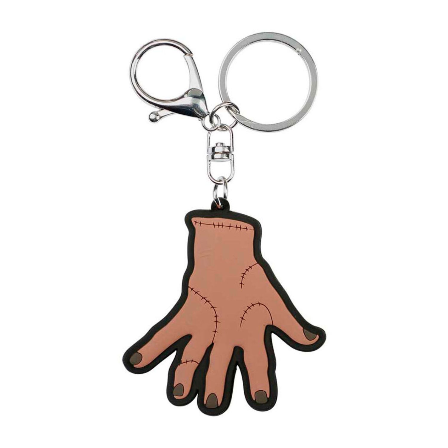 Πρόσθεσε μια νότα μυστηρίου και παιχνιδιάρικης διάθεσης στα κλειδιά σου με το μπρελόκ από καουτσούκ Wednesday Addams "The Thing". Αυτό το πρωτότυπο και εντυπωσιακό αξεσουάρ απεικονίζει το The Thing, το μυστηριώδες μέλος της οικογένειας Addams, σε μορφή ανθεκτικού καουτσούκ.