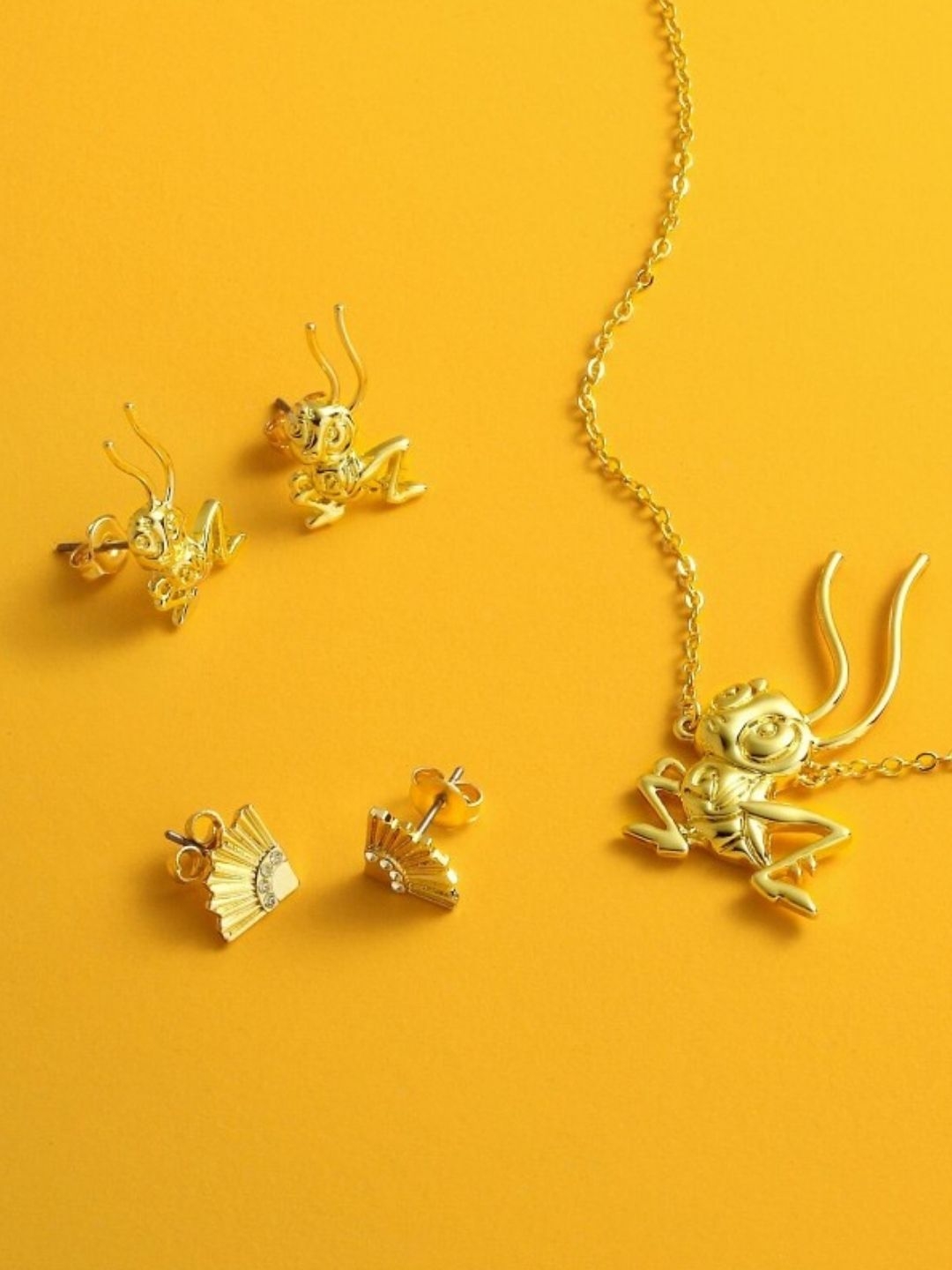 She is strong in heart and the bravest of all, while owning such natural beauty. These dainty fan design studs, inspired by Mulan herself, are a reminder to live by honour. High shine finish, 14kt gold-plated stud earrin with fan design decorated with crystals by Swarovski® Measures approx 10mm. Titanium posts for pierced ears. -Officially Licensed -Imported
