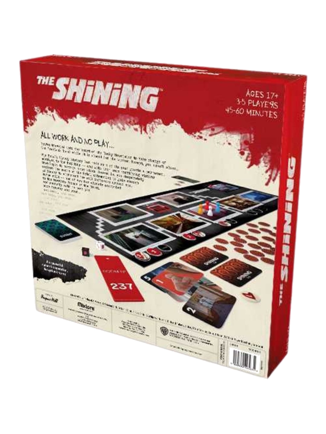 With this board game "Travel to the heart of the Rocky Mountains to take charge of the Overlook Hotel while it is closed for the winter. Except, you aren’t alone. A suspenseful game of cooperation, deception and terror based on the acclaimed movie! Can you work together to survive the winter or will one of you be corrupted and make all of your friends a permanent part of this hotel's bloody history?" - Officially licensed - Imported - Age Range 17+ - Game Type Standalone - Number of Players 3-5 - Subcategory Board Games - Publisher Mixlore - 26.6 x 6.4 x 26.4 cm