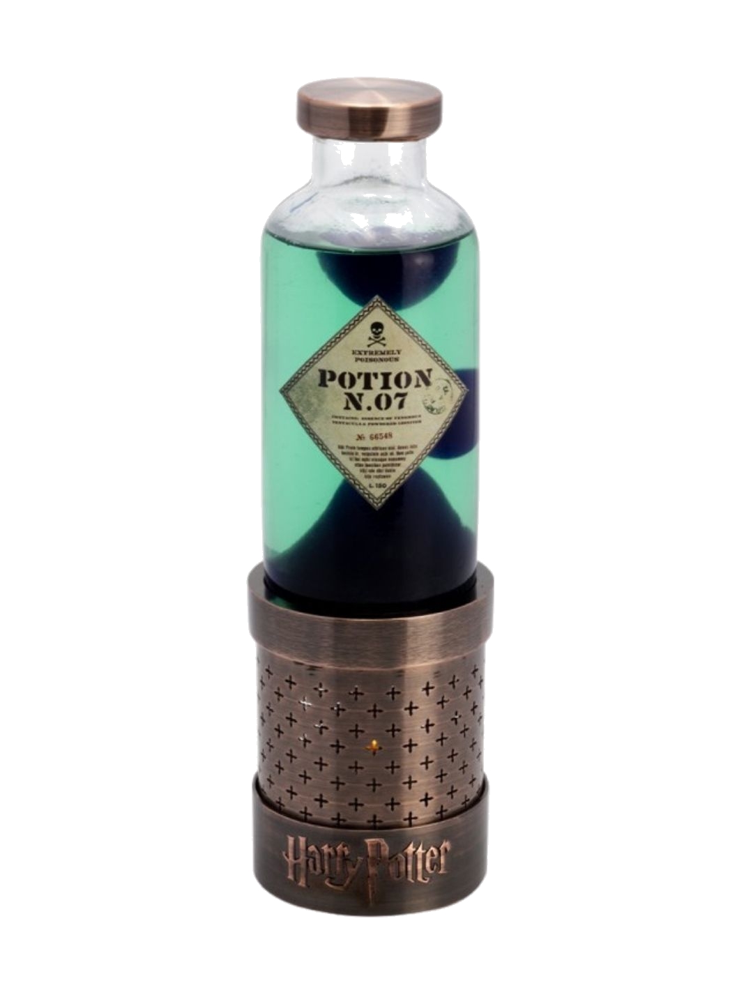 Welcome to your very first potion-making class! First subject : The potion N.7. Professor Snape won't be too severe this time: you just have to place a candle in the base and light it up for the bubles to brew! From there, just sit back and watch their motion in your magnificent Harry Potter Lava Lamp by ABYstyle! - Vintage metal base in 3 parts - Sealed glass bottle - Works with a candle (not included) - Dimensions: 23 x 7 x 7cm - Officially licensed - Imported