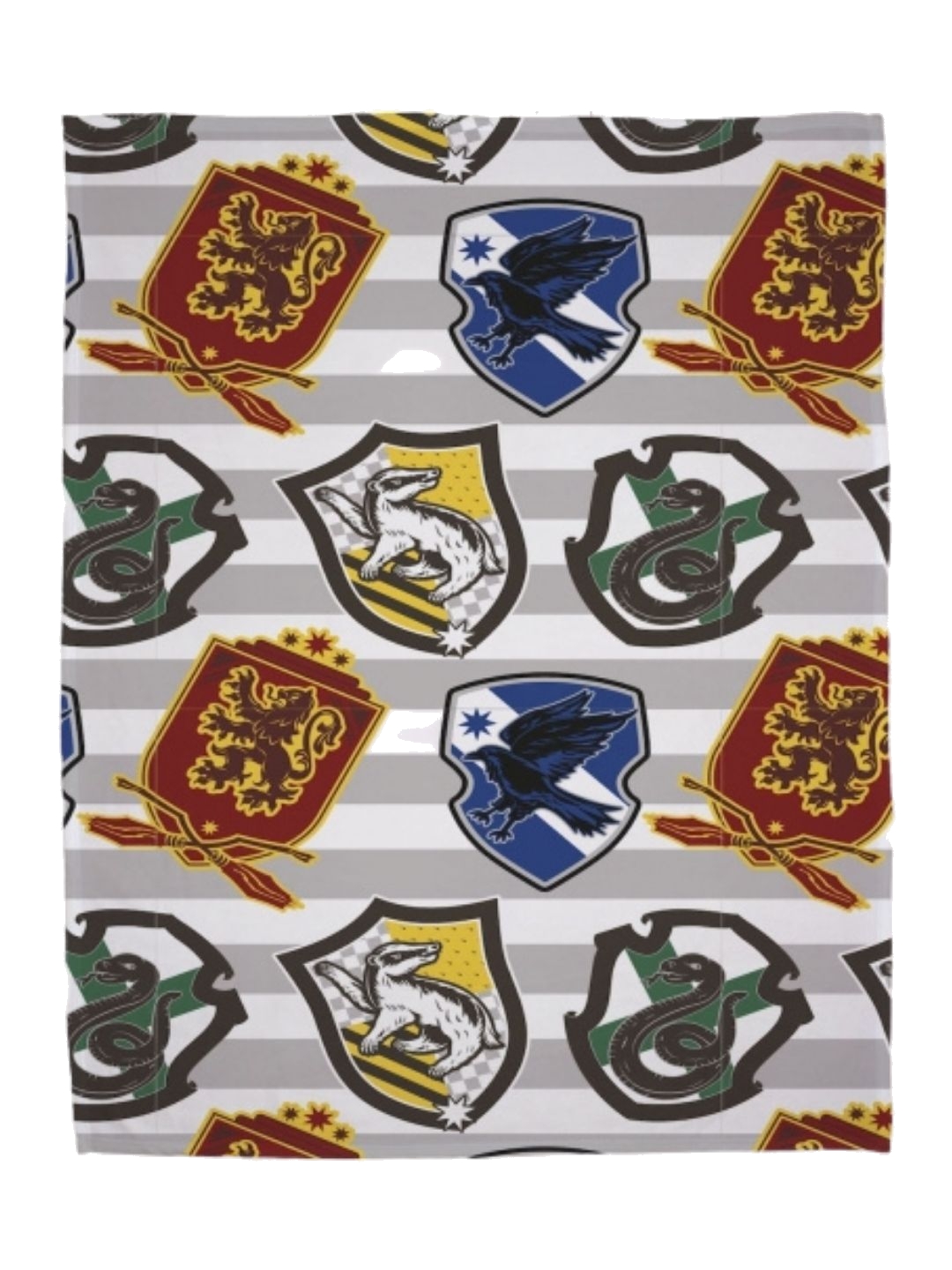 This iconic Harry Potter fleece blanket features the symbols of Gryffindor, Slytherin, Hufflepuff and Ravenclaw. - Officially licensed - 100% polyester - dimensions 100 x 150cm - Imported