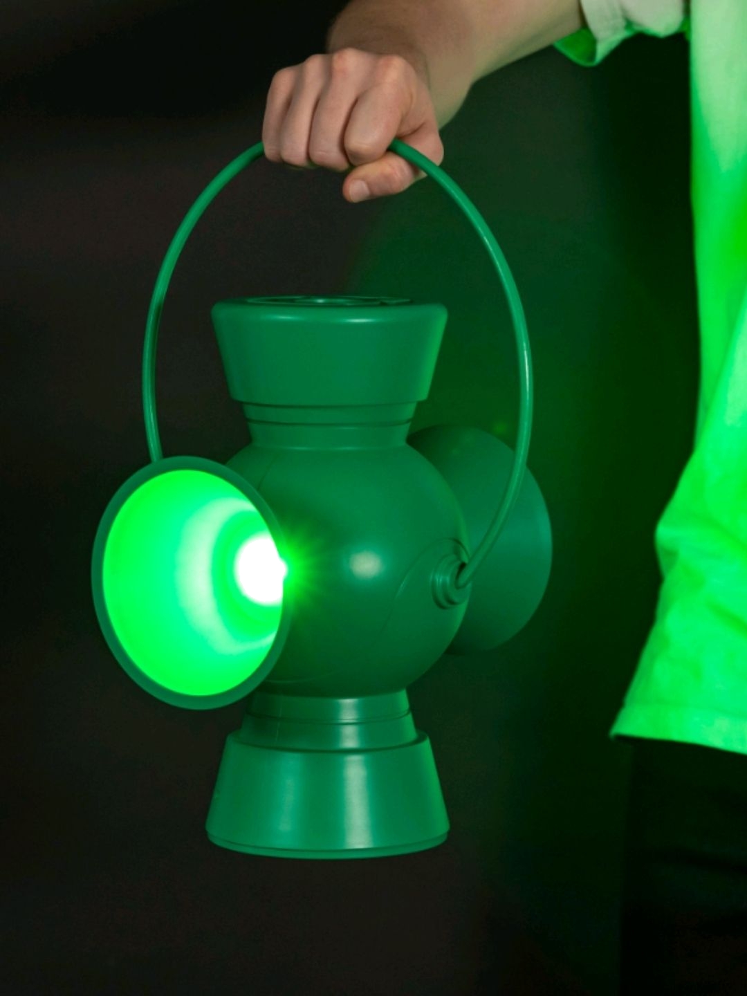 In the darkest night, you can light the way with this Green Lantern Power Battery lamp ensuring that no evil escapes your sight.Supplied in a closed picture box. Life-sized (30cm/12” tall x 27cm/10.5” wide) USB or battery powered lantern shaped light (USB cable included, 3x AA batteries not included). - Officially licensed - Imported
