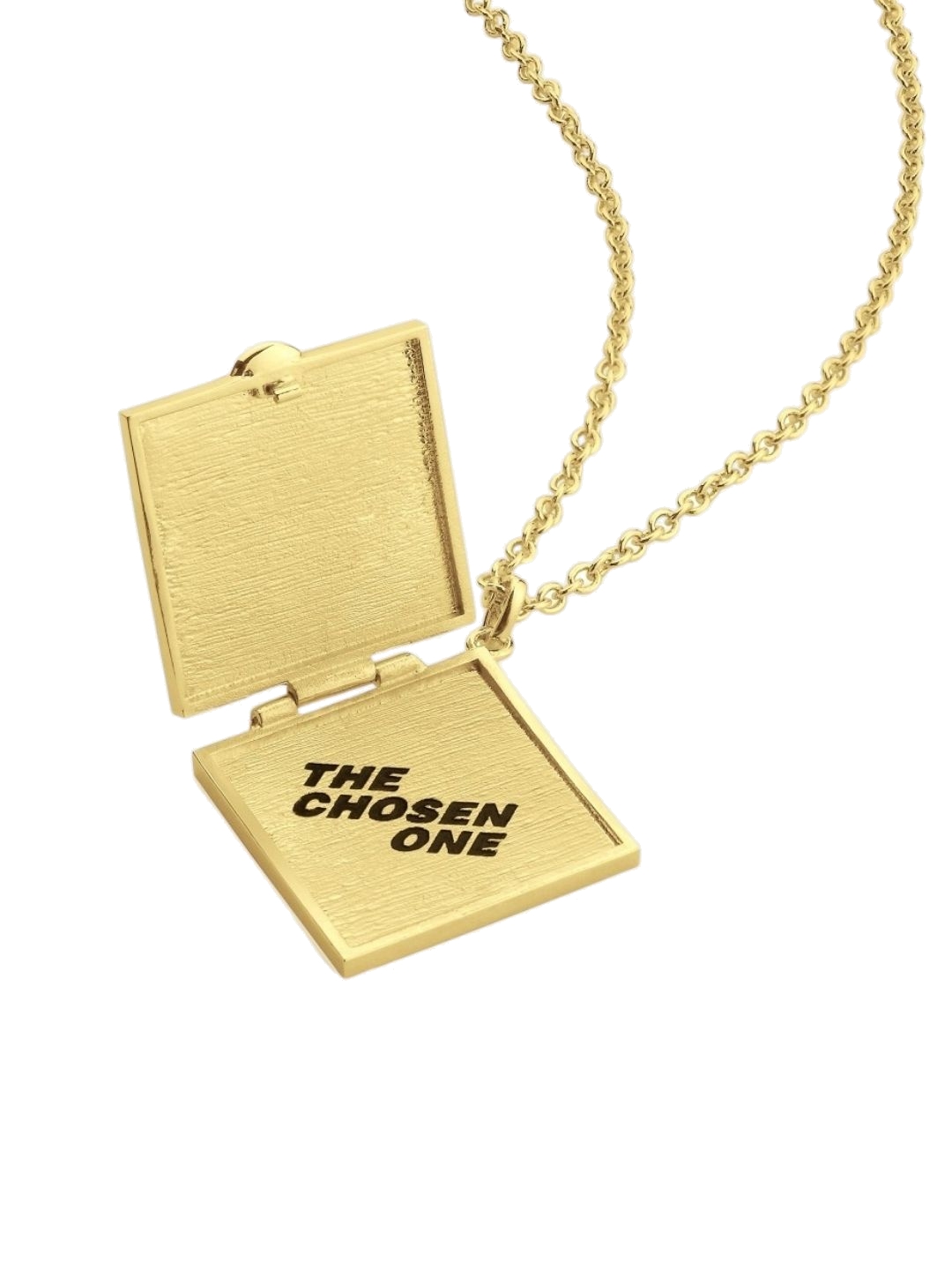 In celebration of our favourite food, PIZZA, Couture Kingdom created this Pizza Planet Box Necklace! Boasting an abundance of detail on the front, it opens to reveal even more. - Officially licensed - 14kt white gold-plated necklace with intricate detail, opens to reveal the text "the chosen one" - Chain length: 45cm + 7cm. - Pendant 25mm x 25mm. - Imported