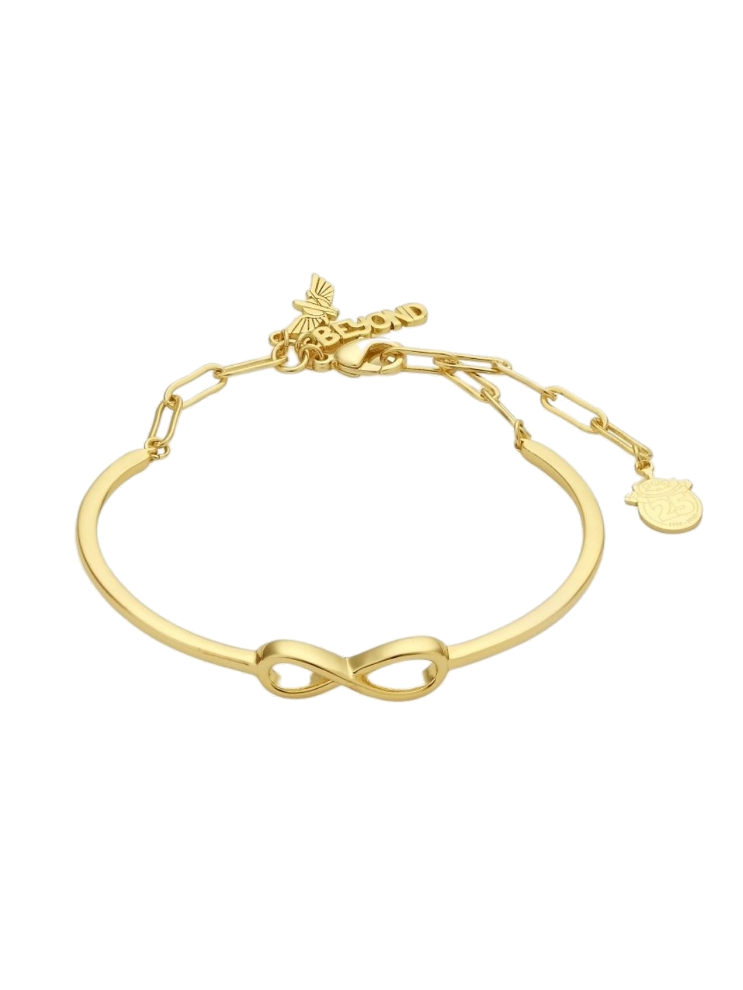 This Buzz anniversary bracelet from Couture Kingdom features a modern, sophisticated take on our beloved space ranger's phrase with a sleek infinity symbol created as part of the bangle, along with the delicate charms suspended from clasp. Treat yourself or make it a sweet gift for the Woody to your Buzz! - Officially licensed - 14kt gold-plated bracelet - width: 60mm - Imported
