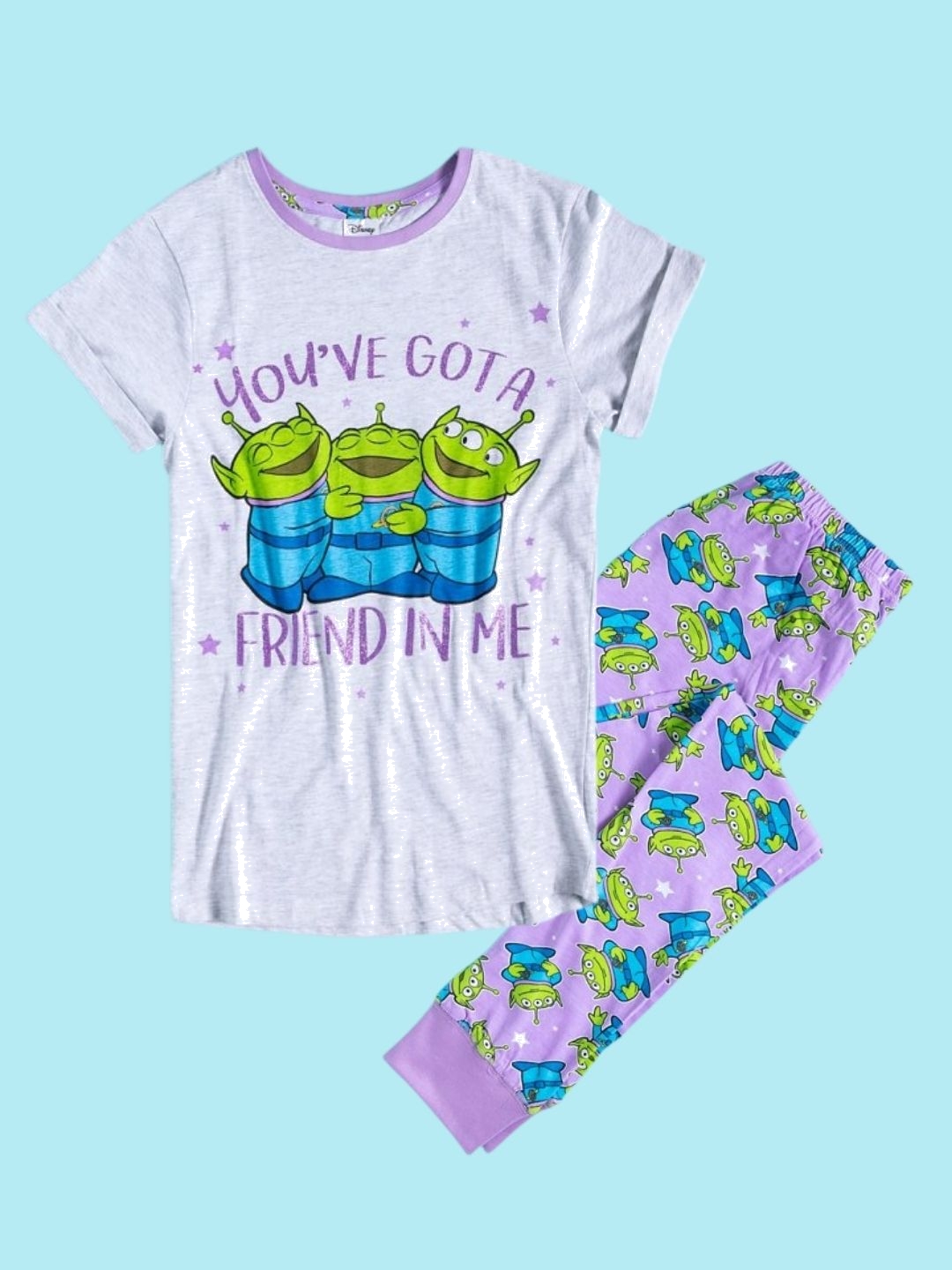 You don't need to win at a claw machine game to bring home these adorable Toy Aliens pyjamas. Along with a print of three aliens, they also read 'You've got a friend in me.' Let them be the chosen ones to complete your journey to the land of nod. - Officially licensed - 100% cotton - Imported