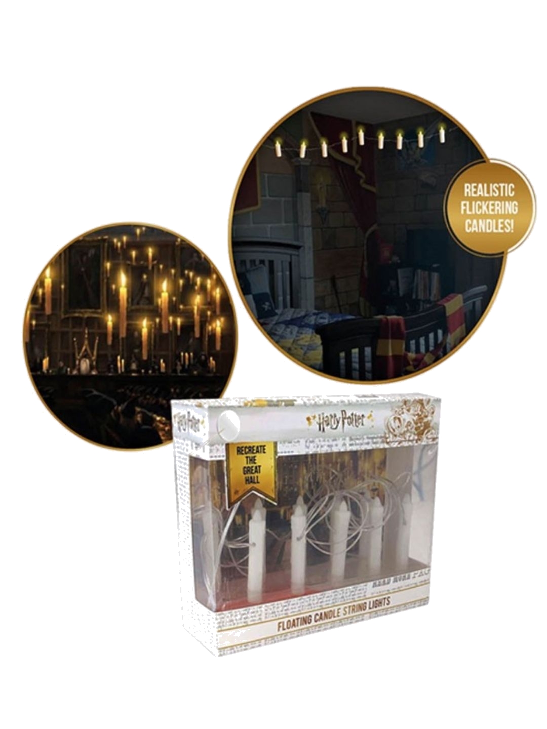 Make a warmer home atmosphere! Battery powered candles inspired by the floating candles in Hogwarts Great Hall! - Officially licensed - The 12 string light candlesare 5cm tall - Candles produce a realistic flickering light - Ideal for hanging over a mirror,across yoour room, or to decorate a Yule ball ! - Uses 3 AAA batteries (not included) - Imported