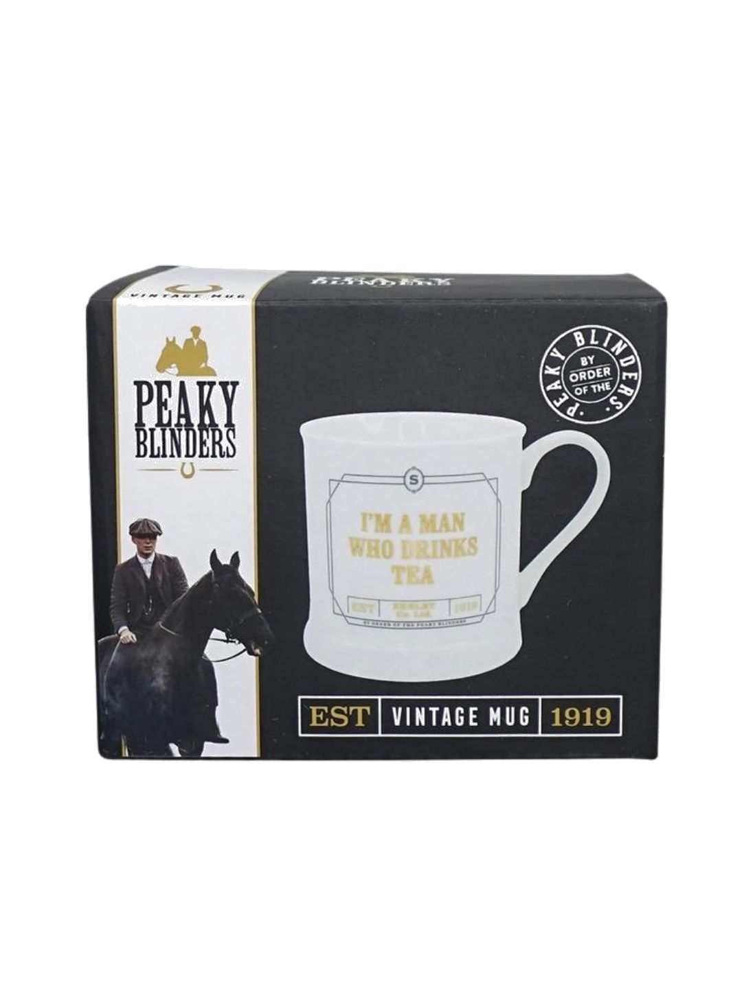 Even Gangsters drink tea! With a stylish vintage shape, the mug features the Iconic quote “By Order of the Peaky Blinders” on the front and “I’m a man who drinks tea” on the back. A must-have addition to any Peaky Blinders display. - Officially licensed - Imported