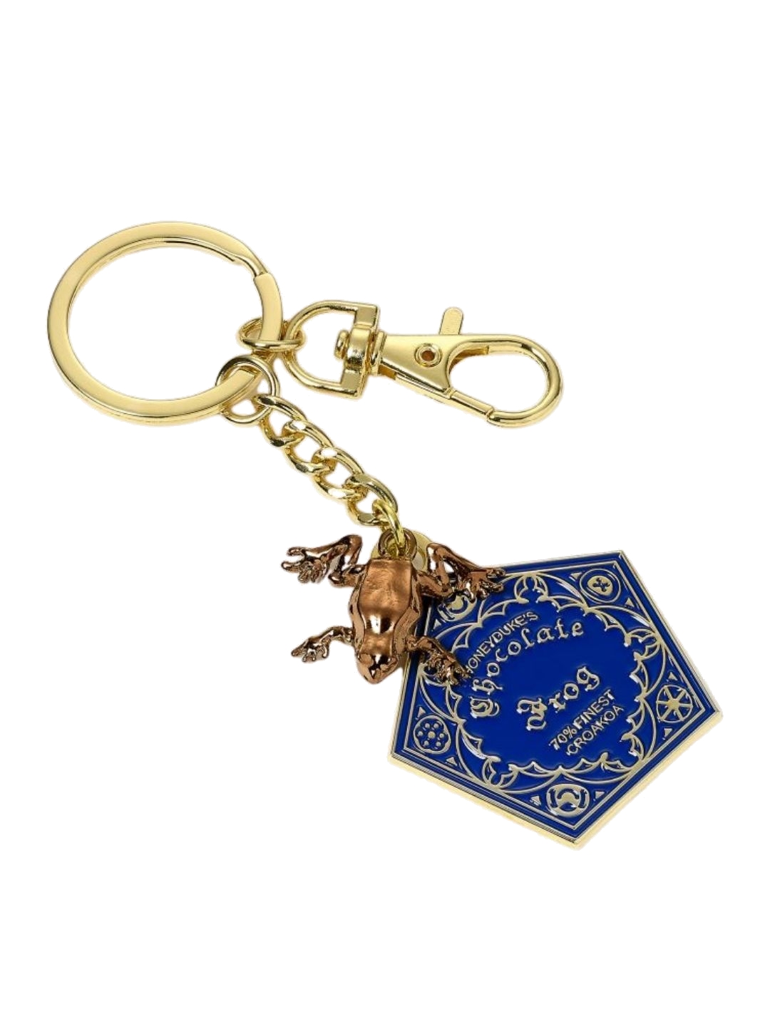 The Harry Potter Chocolate Frog Keyring is an official collectible featuring a chocolate frog design on a gold plated keyring. The Chocolate Frog is the magical confection first seen in Harry Potter and The Philosophers Stone, packaged with enchanted collectible cards featuring famous witches and wizards. This keyring is part of The Carat Shop’s Chocolate Frog collection, which includes charms, necklaces, pin badges, and keyrings, and comes presented on official Harry Potter branded card packaging. This product is not edible and is intended solely for collection and use.