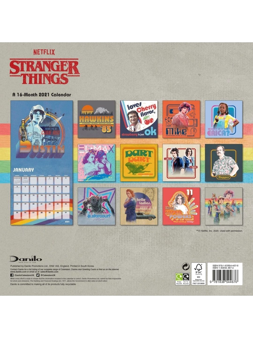 This iconic Calendar 2021 is inspired from the series Stranger Things! - Officially licensed 16-month wall calender features fantastic designs. - Size: 30 x 30 cm - Imported