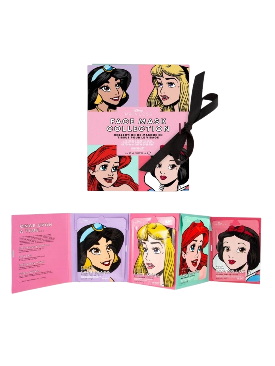 This is Princess Sheet Face Masks to revive & refresh skin. Become a Disney Princess with these face masks! - Officially licensed - Disney Set Of 4 Princess Sheet Face Masks from Mad Beauty - Aurora: lavender, Ariel: cucumber, Jasmine: green tea, Belle: Rose - Intended for adult use only - Imported