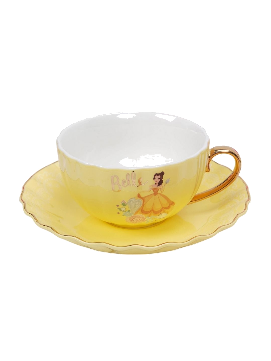 Bring some Disney magic to tea time with this elegant Belle teacup and saucer set! - Officially licensed - Hand wash only. Not suitable for microwave. - 250ml new bone china mug with scalloped edge - Scallop edged saucer with gold edge - Imported