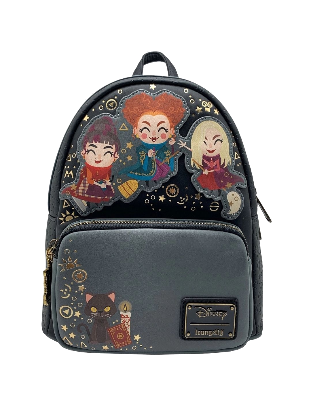 This Loungefly Hocus Pocus Chibi backpack featuring everyones favorite three aging evil witches, the Sanderson sisters-- Winifred, Mary, and Sarah and the loveable cat Thackery Binx! - Officially licensed - 22 x 26 x 12 cm - Imported