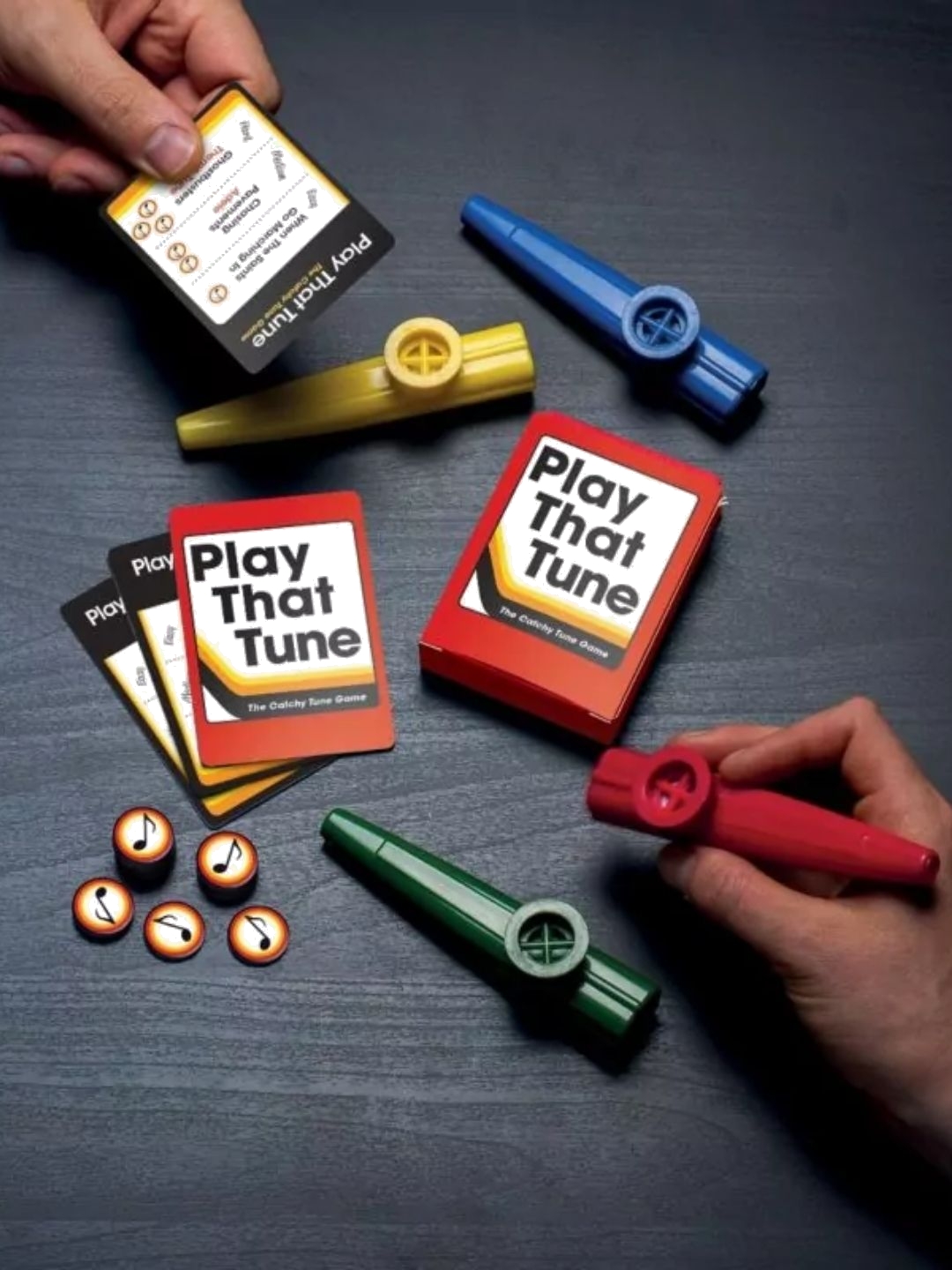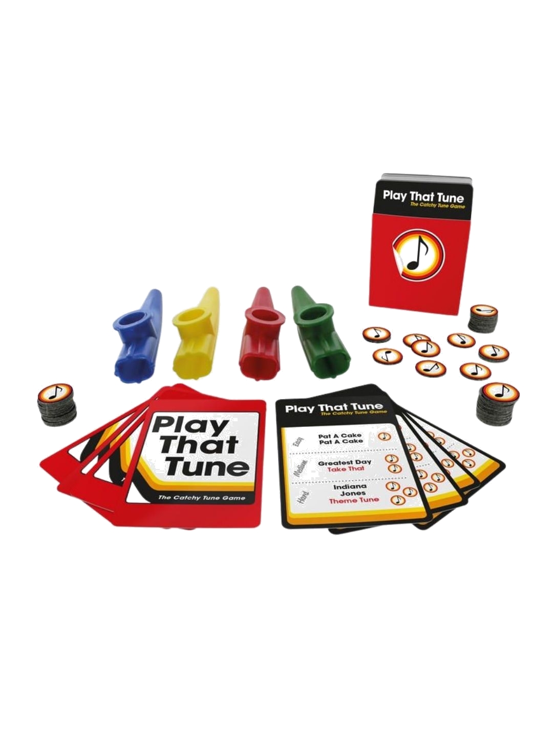 How good is your knowledge of cheesy pop songs and catchy TV theme tunes? And how about your Kazoo playing? Both skills will be called upon in this fantastically fun family party game! There are 150 tunes to choose from! - Officially licensed - 50 game cards, 4 Kazoos, 40 playing counters - English Version - ages 6+ - Imported