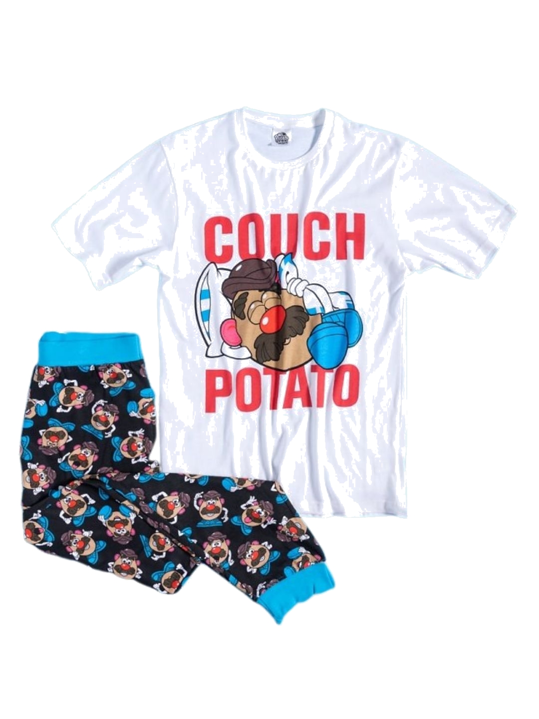 Discover comfort and humor with the Disney Potato Head Pyjama, a high-quality pyjama set featuring the funny Mr Potato Head on both the top and the bottoms. Made from 100% cotton, it ensures durability and comfort, perfect for sleeping or enjoying cosy loungewear at home. This pyjama set is an excellent choice for every night and makes the perfect gift for any Toy Story fan, whether for a birthday, Christmas, or Easter celebration.