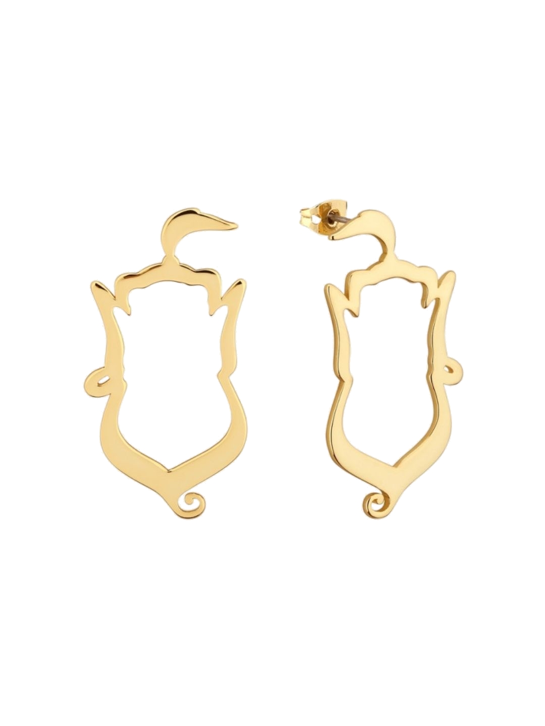 These unique high-shine14kt gold-plated stud earrings from Couture Kingdom are inspired from Aladdin and features the Genie. A truly fun piece to treat yourself, or a magical gift to celebrate a true friend! - Officially licensed - Earrings measure approx 55mm x 25mm. - Imported