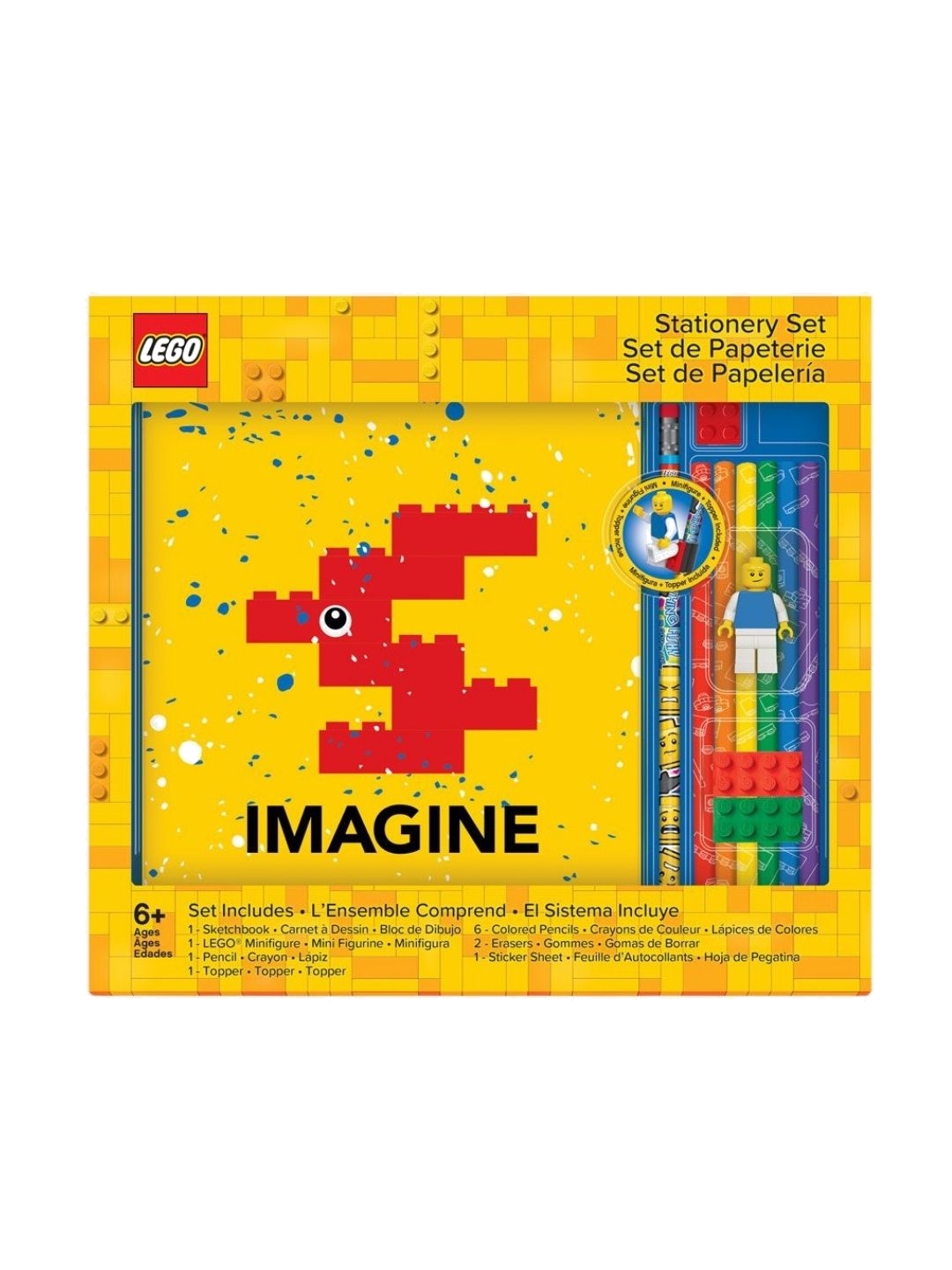 Organize your office with this amazing LEGO® stationery set! - Officially licensed - Notebook - Lego figure - pencil - 1 topper - 6 colored pencils - 2 erasers - sticker sheet - Imported