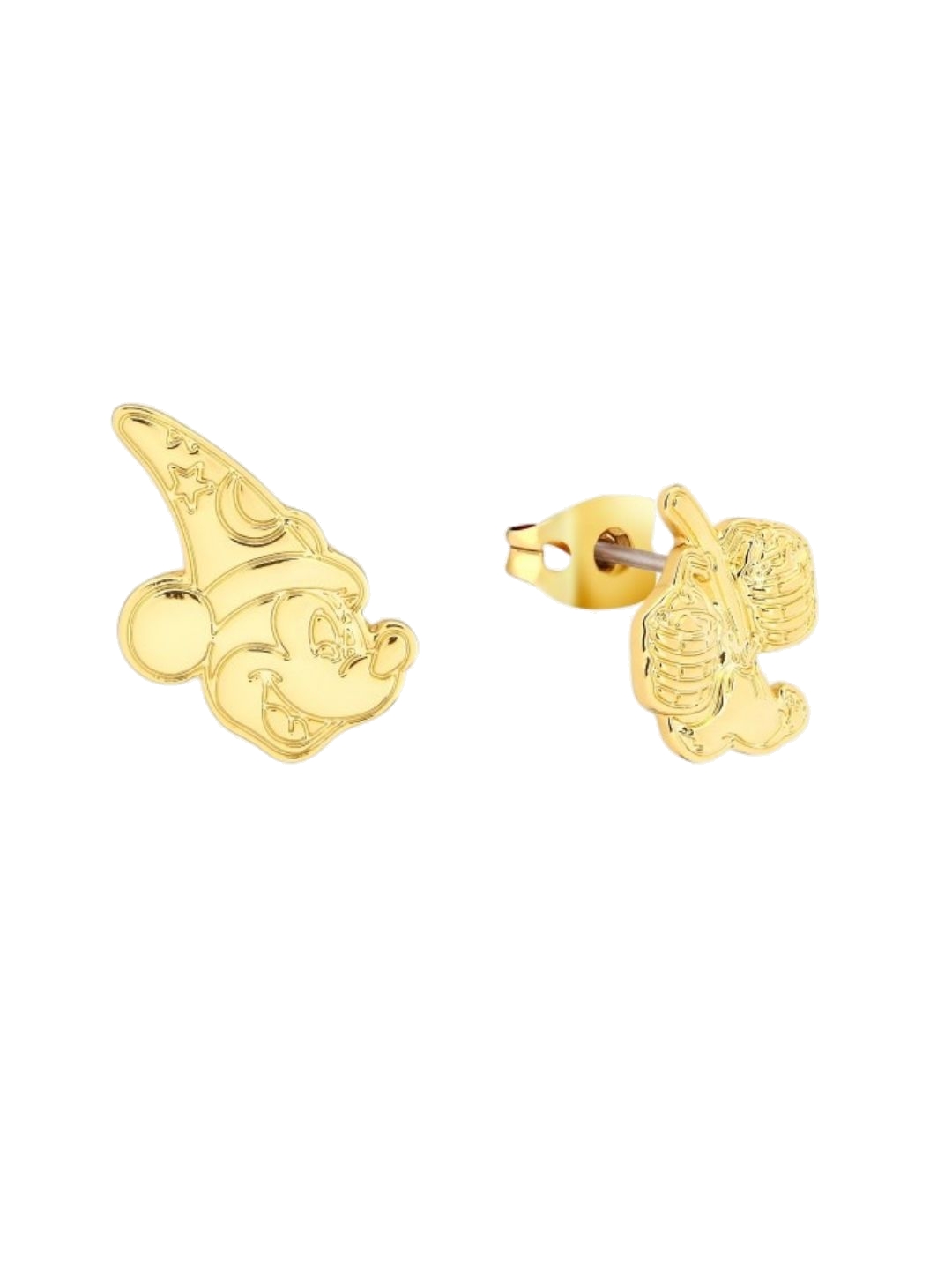 Celebrating 80 years of Disney's Fantasia Couture Kingdom pay homage to Mickey's titular role as the Sorcerer's Apprentice by designing these mis-matched 14kt gold-plated stud earrings which feature both Mickey wearing the Sorcerer's hat as well as the famous mop and buckets! - Officially licensed - Earring length: 18mm approx - Imported