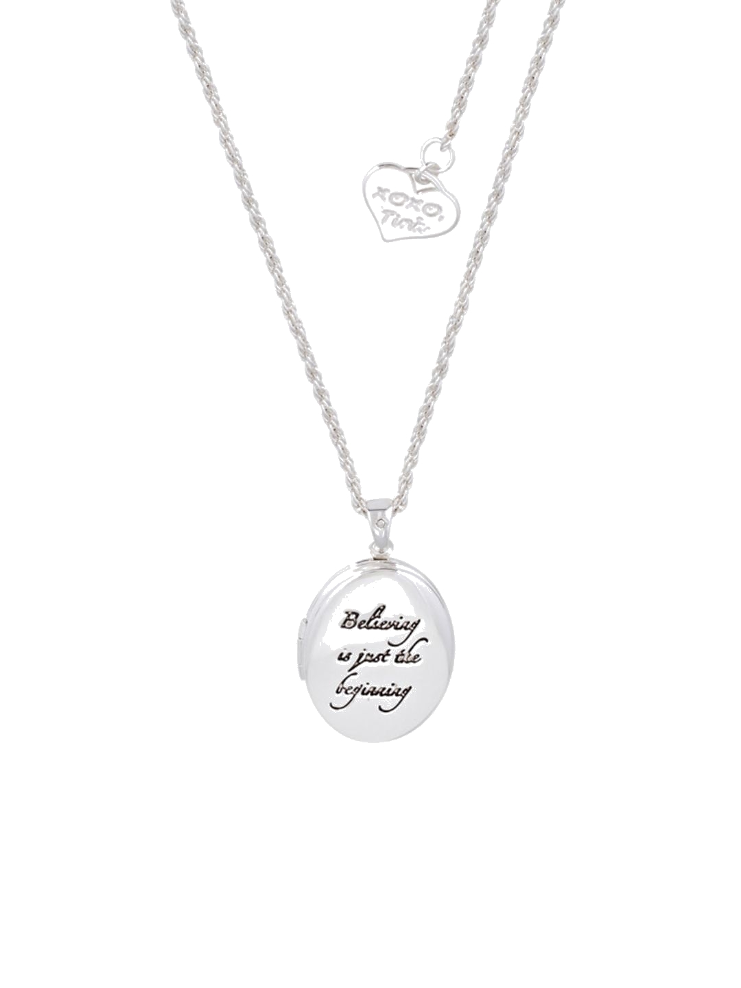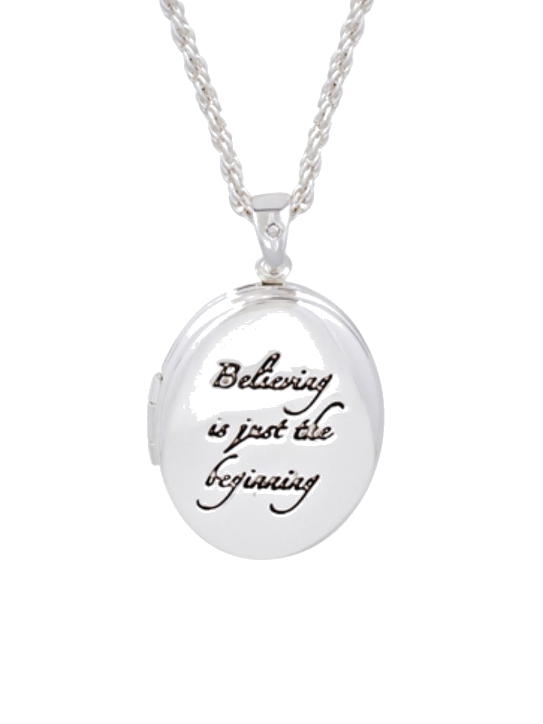 Disney Couture White Gold-Plated Tinkerbell "Believing is Just the Beginning" Locket Necklace