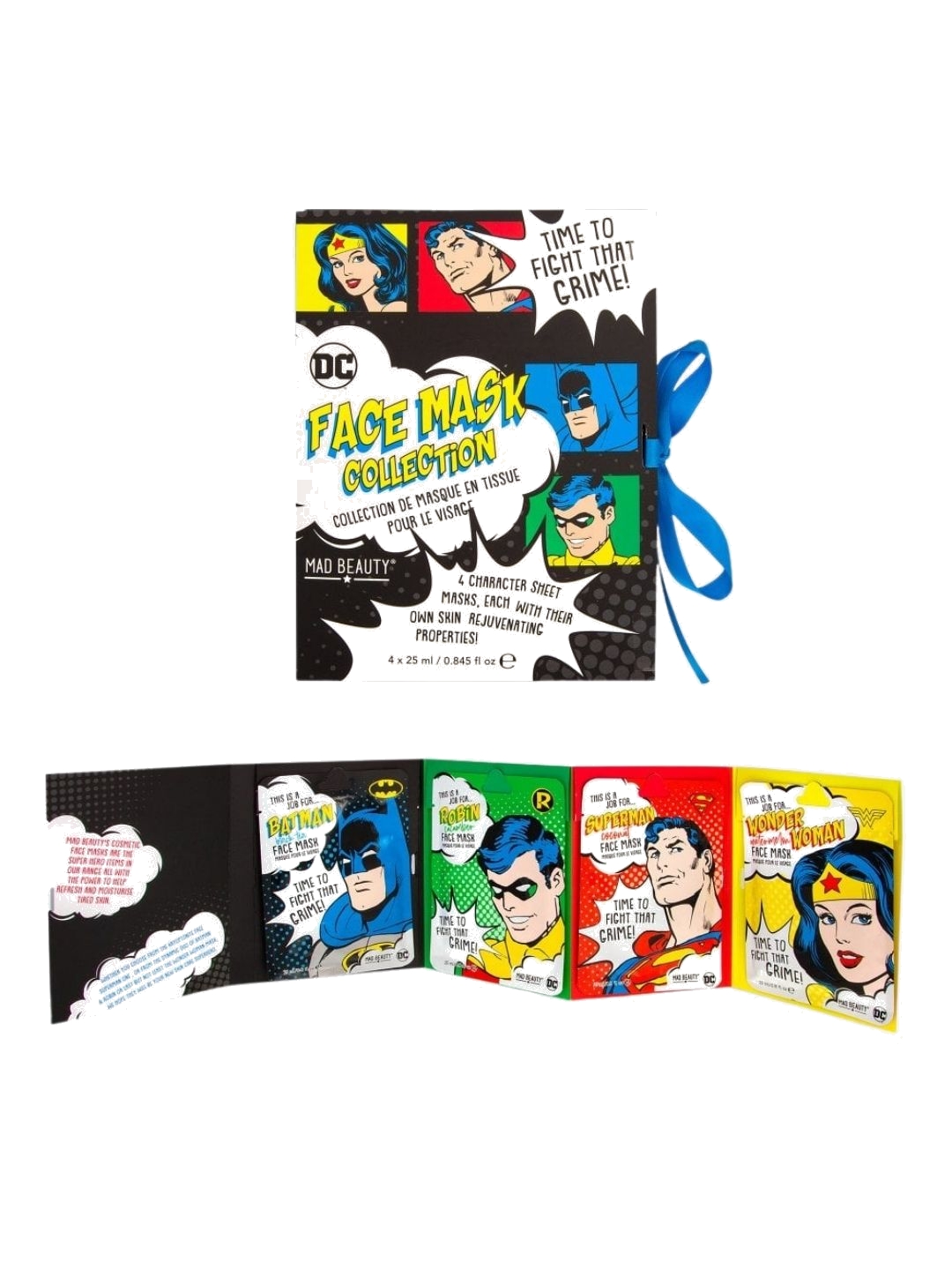 Discover the delightful face care collection by Mad Beauty, inspired by your favorite DC Comics heroes. These face masks help you care for your skin while enjoying a relaxing moment with your superheroes. Each mask has its own unique formula and properties to suit your skin's needs.