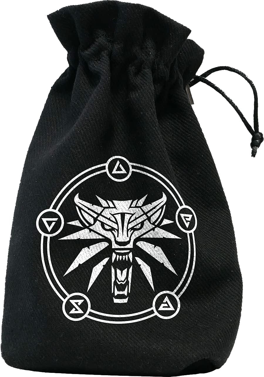 The Witcher Dice Pouch Geralt School of The Wolf is inspired by the iconic The Witcher franchise and proudly features the legendary School of the Wolf emblem, placed within a circle of authentic witcher signs. Made from sturdy black cotton with a clean white print, the pouch reflects a straightforward, practical, and efficient design, just like Geralt of Rivia himself. Secured with durable drawstrings, it offers reliable protection and easy transport, while its interior can hold up to 5 full sets of dice, making it perfect for RPG sessions, D&D games, tabletop adventures, and Witcher collectors.